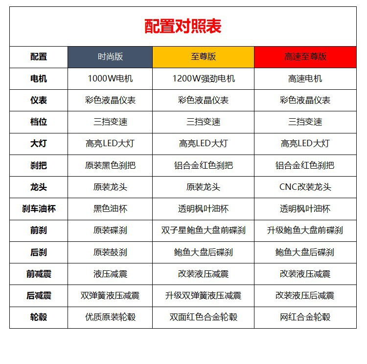 Модель Fashion: свинцово-кислотный аккумулятор 60В 20Ач + запас хода около 100 миль; Модель Fashion: свинцово-кислотный аккумулятор 72V20A + запас хода около 120 миль; Модель Fashion 72v22A: аккумулятор черно-золотого цвета + запас хода около 140 миль; Модель Fashion 72V32A с свинцово-кислотным аккумулятором + запас хода около 200 миль; Модная литиевая батарея 72 В, 30 А (съемная) + запас хода около 200 миль; Модная литиевая батарея 72 В, 60 А (съемная) + запас хода около 380 миль; Экстремальная версия: свинцово-кислотный аккумулятор 60В 20А с запасом хода около 100 миль; Экстремальная версия: свинцово-кислотный аккумулятор 72В 20А с запасом хода около 120 миль; Экстремальная версия аккумулятора 72V22A в черно-золотом исполнении + запас хода около 140 миль; Экстремальная версия: свинцово-кислотный аккумулятор 72В32А + запас хода около 200 миль; Экстремальная версия аккумулятора 72V35A в черно-золотом исполнении + запас хода около 220 миль; Литиевая батарея Supreme Edition 72 В, 30 А (настраиваемая) + запас хода около 200 миль; Литиевая батарея Supreme Edition 72 В, 60 А (съемная) + дальность действия около 380 миль; [Высокоскоростной мотор, около 70 ярдов] Версия Supreme, свинцово-кислотный аккумулятор 72В20А; [Высокоскоростной мотор, около 70 ярдов] Версия Supreme, аккумулятор 72V22A, черно-золотой; [Высокоскоростной мотор, около 70 ярдов] Версия Supreme, свинцово-кислотный аккумулятор 72В32А; [Высокоскоростной мотор, около 70 ярдов] Версия Supreme, аккумулятор 72V35A, черно-золотой; [Высокоскоростной мотор, около 70 ярдов] Версия Supreme с литий-ионным аккумулятором 72В30А (можно заказать); [Высокоскоростной мотор, около 70 ярдов] Версия Supreme с литий-ионным аккумулятором 72В60А (можно заказать); [Высокоскоростной мотор, около 70 ярдов] Версия Supreme с литий-ионным аккумулятором 72В80А; Модная версия универсального байка Naked Bike 60.72 (без аккумулятора и зарядного устройства); Универсальный байк Extreme Edition 60.72 (без аккумулятора и зарядного устройства); [Высокоскоростной мотор, около 70 ярдов] Версия Supreme 60.72, универсальный автомобиль без аккумулятора и зарядного устройства