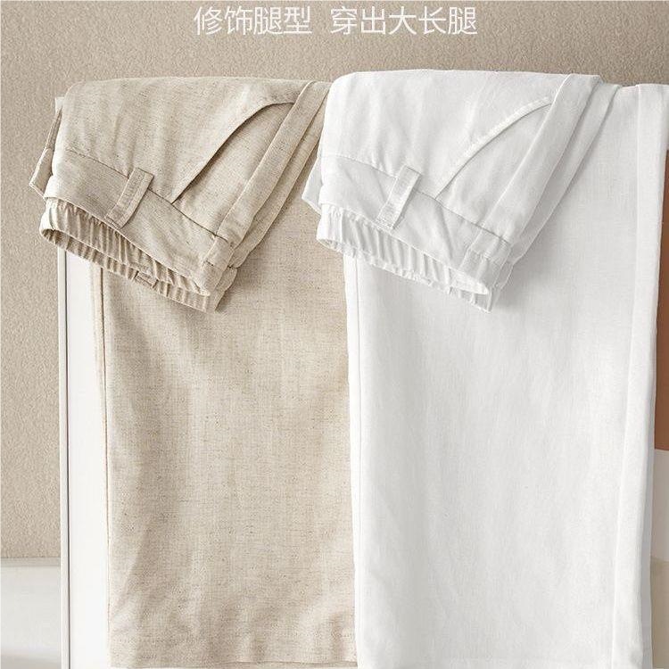 Широкие брюки из хлопка и льна для женщин, новые летние свободные льняные женские брюки, драпированные тонкие повседневные прямые длинные брюки с высокой талией для женщин.