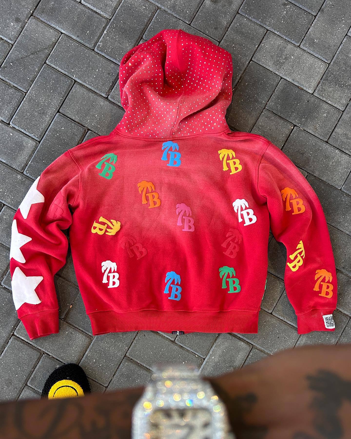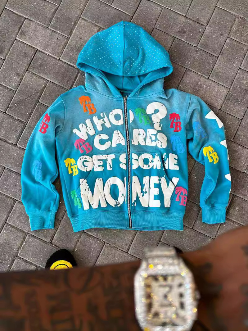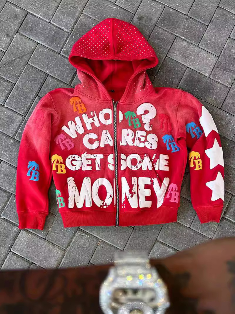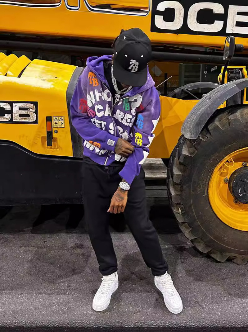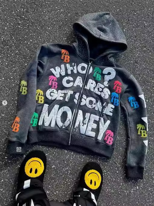 Мужской свободный худи с молнией, американский стиль 2025 года, с принтом из пенополиуретана, в ретро-стиле стрит-хип-хоп