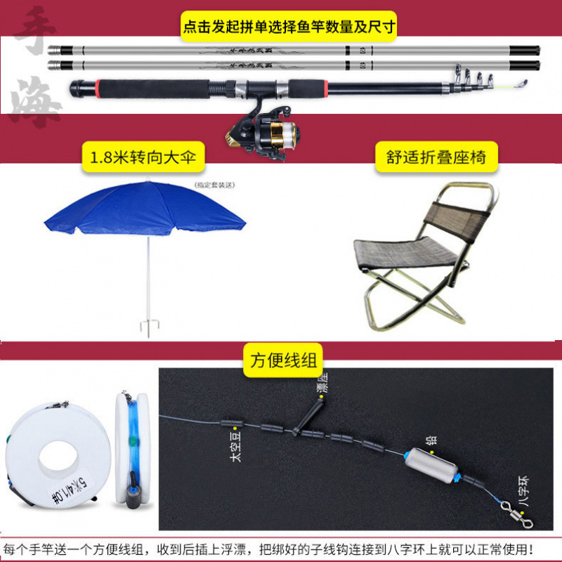 Полный набор удочек, комбинированный набор ручных удочек, рыболовные снасти, морская удочка, принадлежности для удочек, аксессуары для начинающих