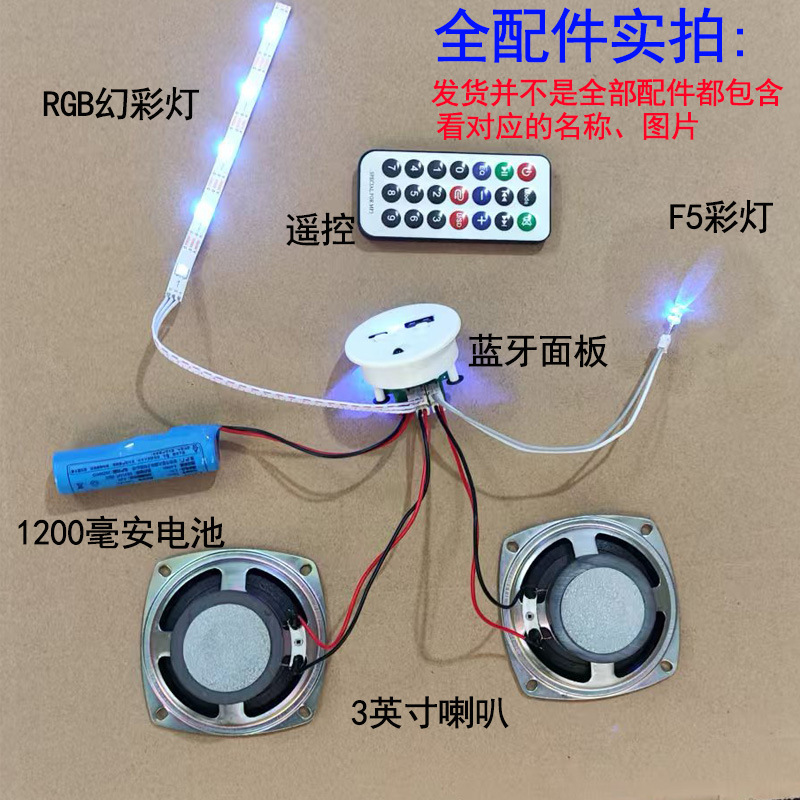 Клеммный провод ph2.0 15 см*1; Бусины для лампы F5 с проволокой; дистанционное управление; Аккумулятор 1200 мАч с защитной пластиной и кабелем.; Аккумулятор 2000 мАч с защитной пластиной и кабелем; Динамик* 3inch квадратный с проводом* 1 шт.; Динамик* 2inch квадратный с проводом* 1 шт.; Динамик* 1.5inch круглый с проводом* 1 шт.; Сетчатый чехол черный* 1.5inch * 1 шт.; Сетчатый чехол белый* 1.5inch * 1 шт.; Световая полоса мягкая (сварная проволока); Световая полоса*жесткая+провод; Световая полоса * 43 см (модернизированная плата); Световая плата v5013 с кабелем (требуется обновление материнской платы)