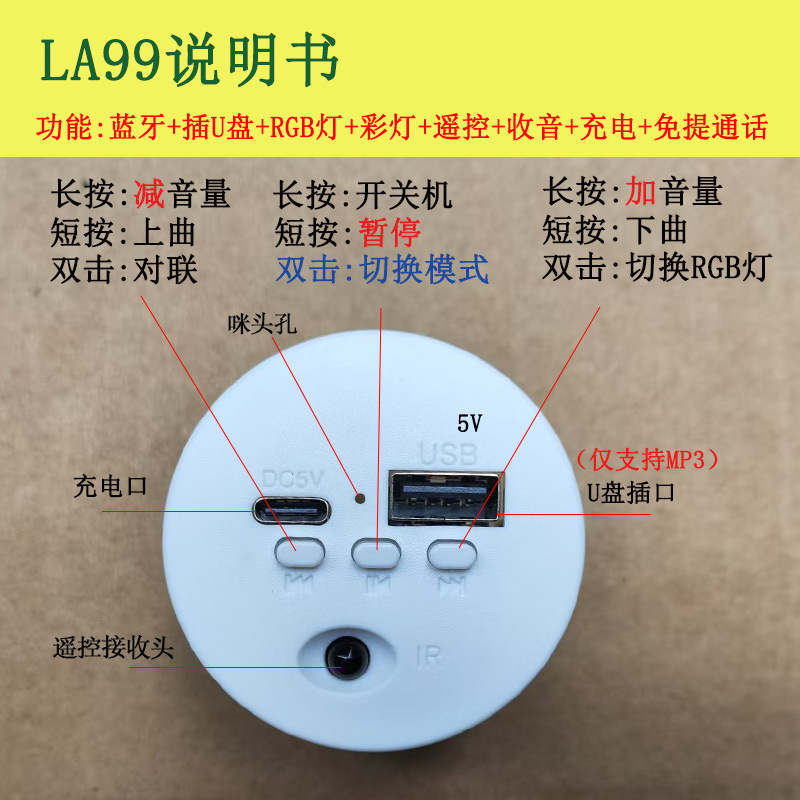 Модуль Bluetooth с панелью, плата декодирования mp3, печатная плата LA99, пульт дистанционного управления, двухканальный RGB, модификация волшебного света