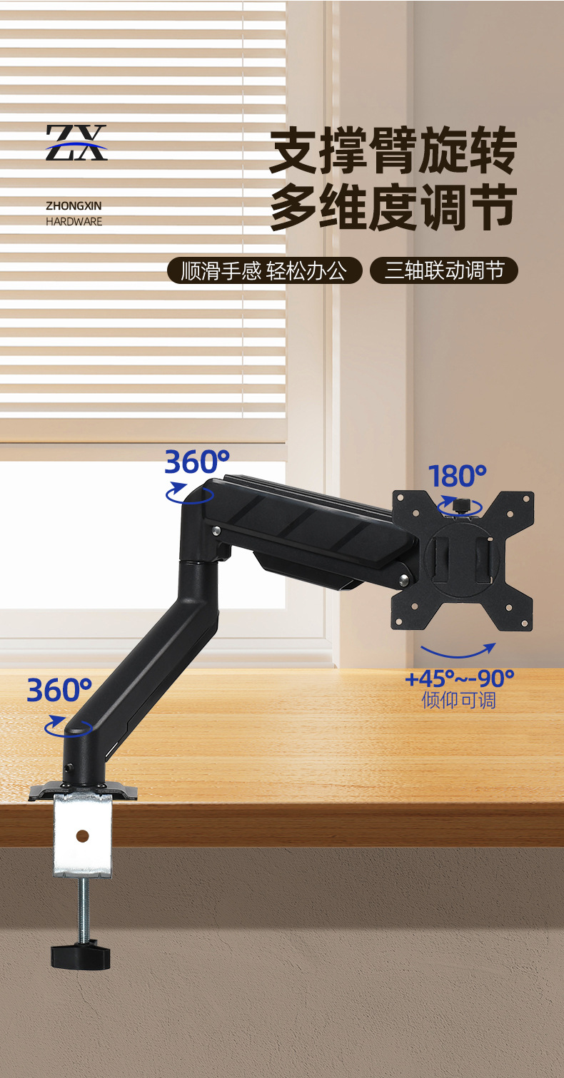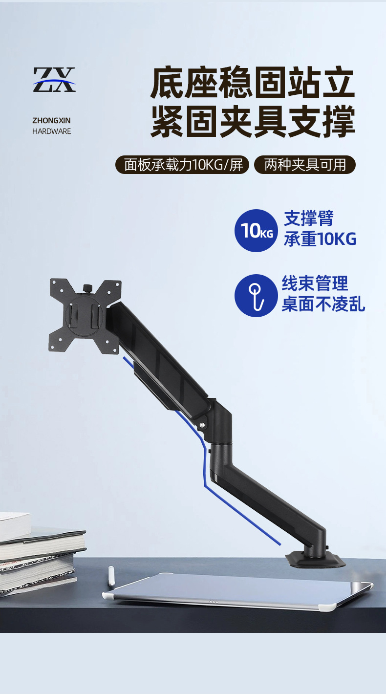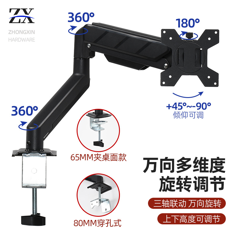 Металлическая однорычажная подставка для монитора с газовой пружиной и одним экраном, подъемная подставка для монитора, подходит для настольного компьютера, 10–32 дюйма