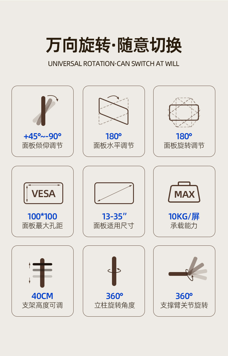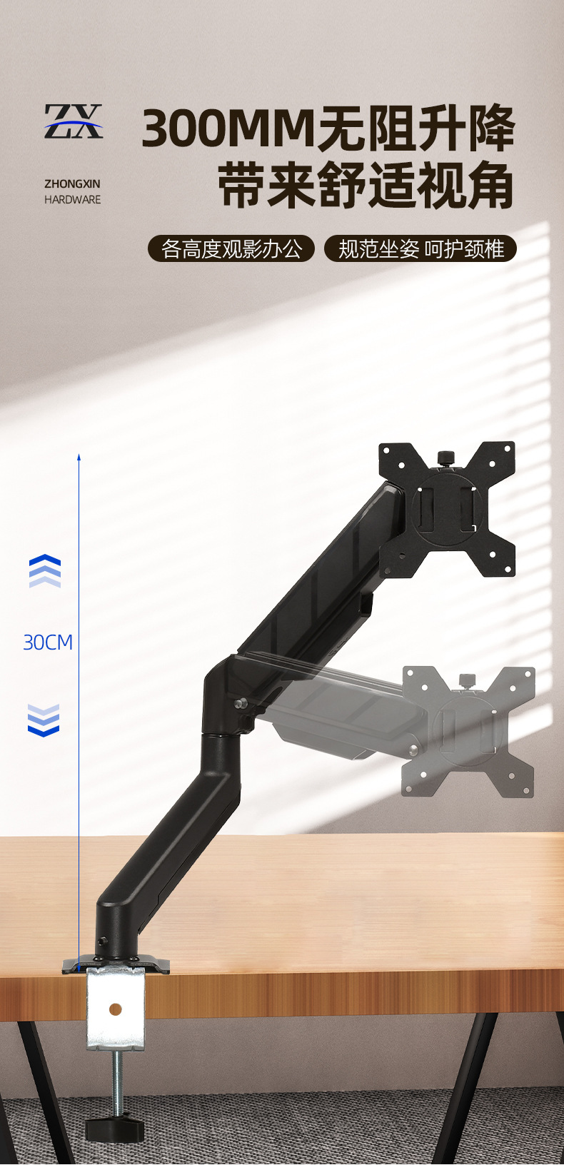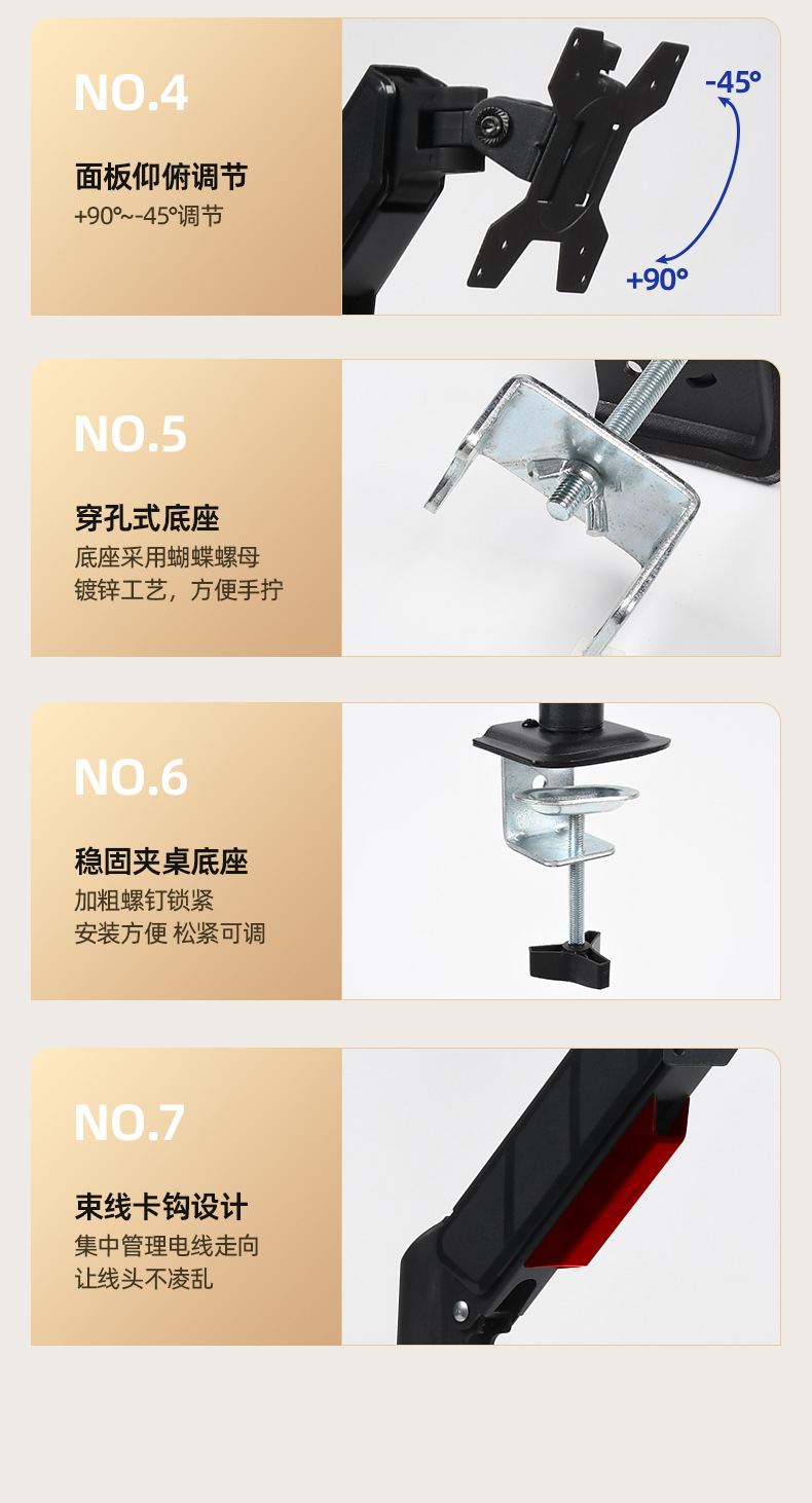 Металлическая однорычажная подставка для монитора с газовой пружиной и одним экраном, подъемная подставка для монитора, подходит для настольного компьютера, 10–32 дюйма