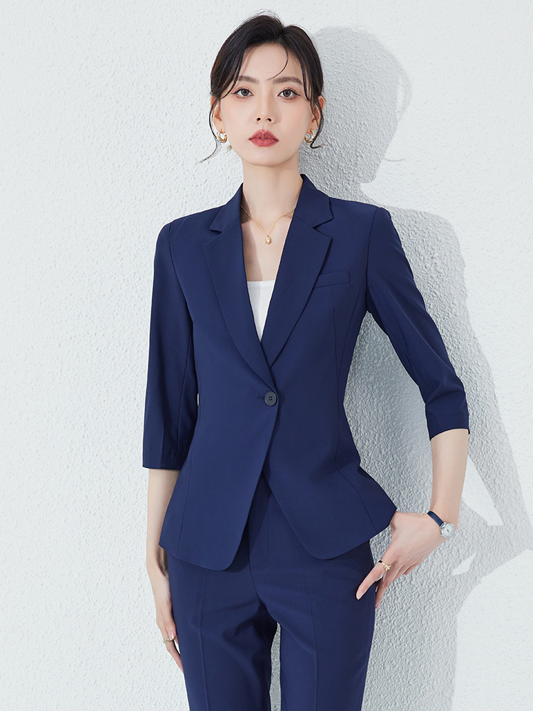 Черный костюм со средним рукавом, женский летний тонкий костюм 2024 года, новая стильная профессиональная официальная одежда, рабочая одежда для менеджера отеля