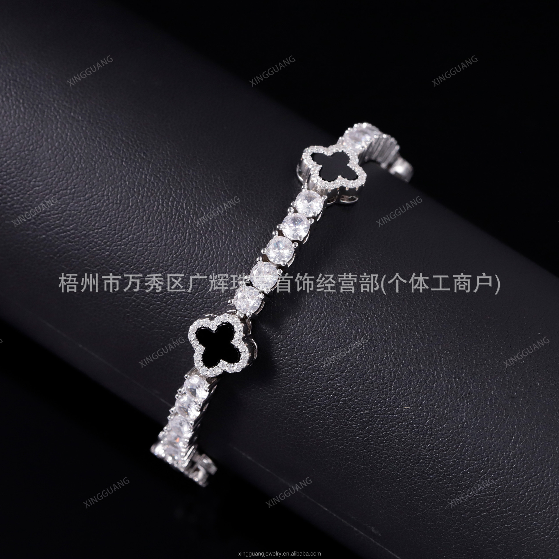 Браслет с клевером из серебра 925 пробы с моассанитом, инкрустация, позолота K-золотом, для рэпера, рэпера, певца
