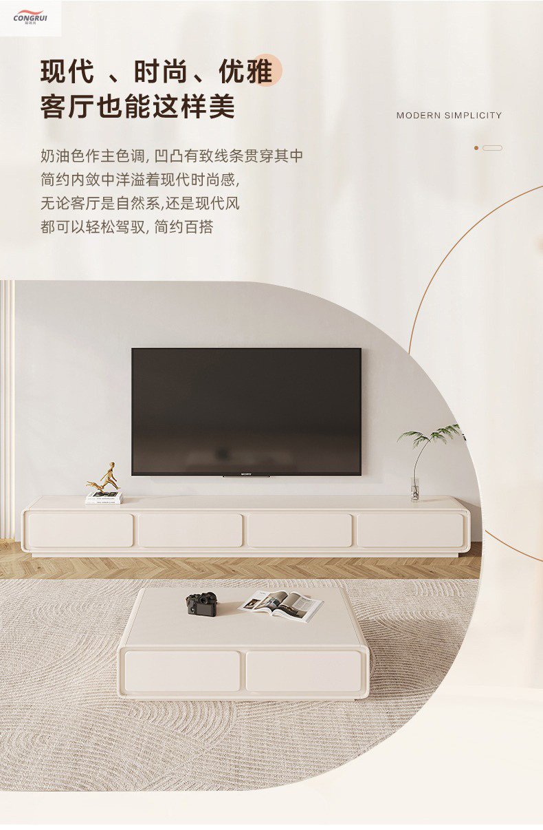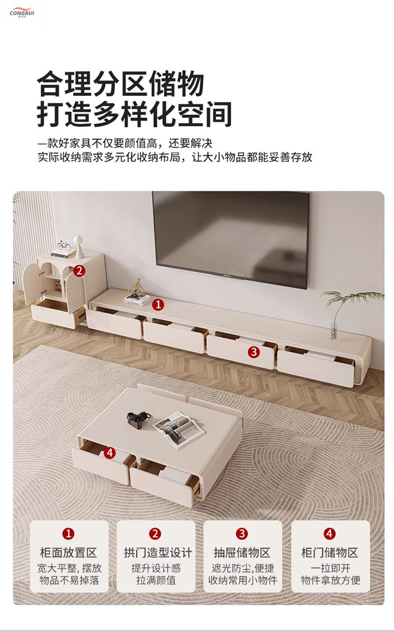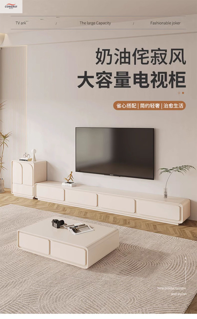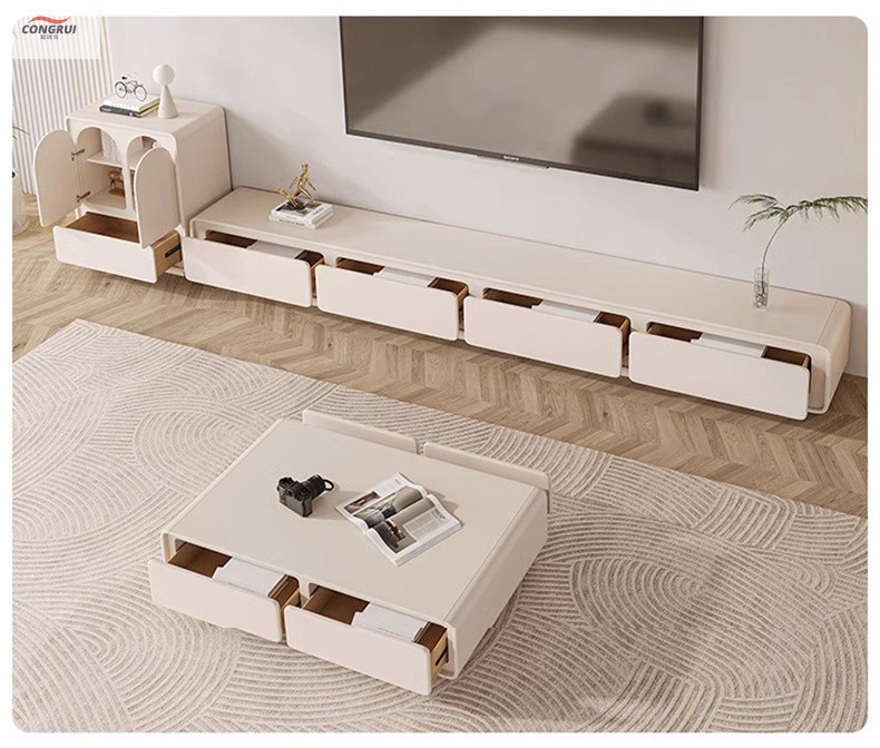 Комбинированный комплект тумбы под телевизор в кремовом стиле Congruishang, полный комплект напольной высококачественной тумбы под телевизор с выдвижным ящиком для хранения вещей