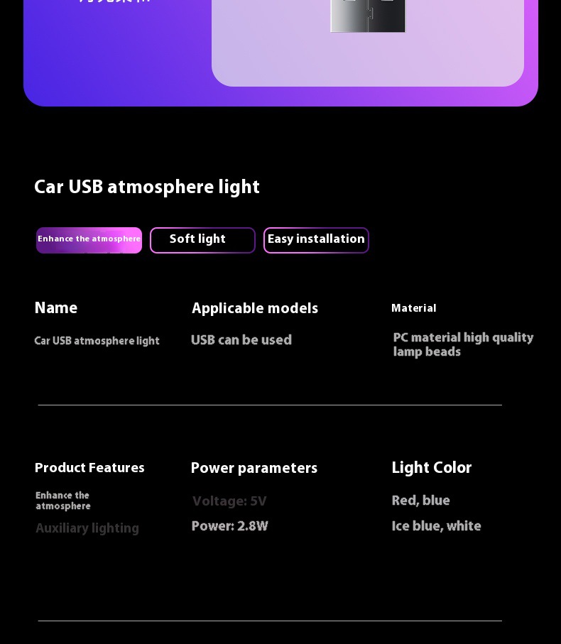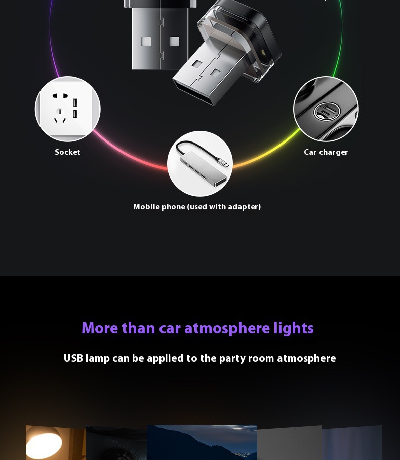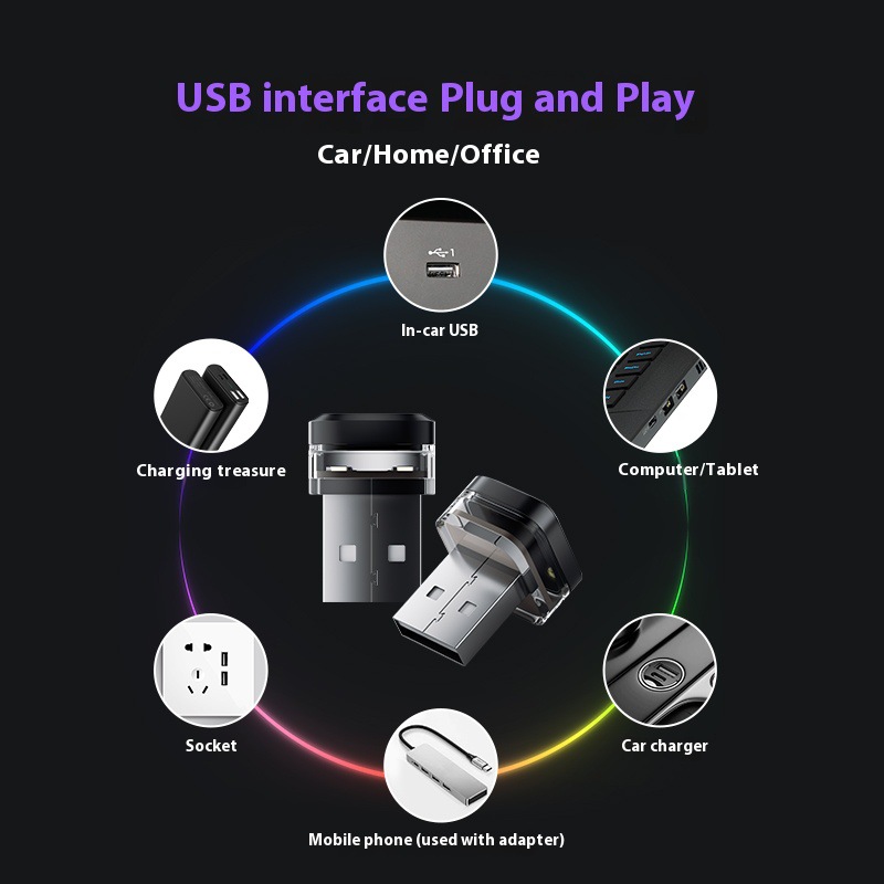 Трансграничный хит продаж, автомобильный квадратный USB-светильник, декоративный светодиодный атмосферный светильник, 4-цветное освещение, небольшие фонари для нескольких сцен