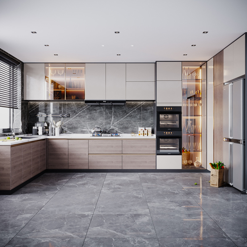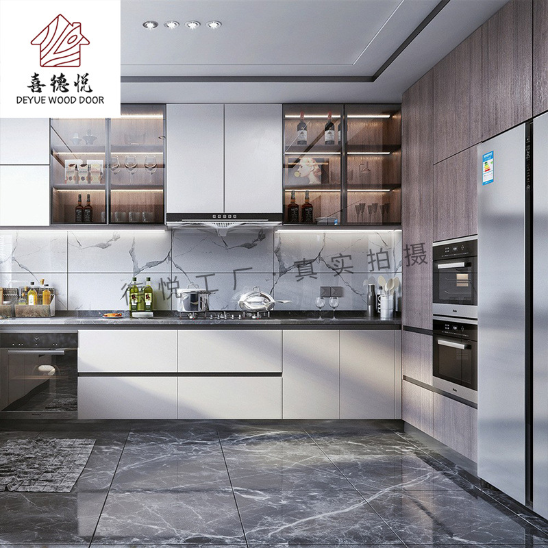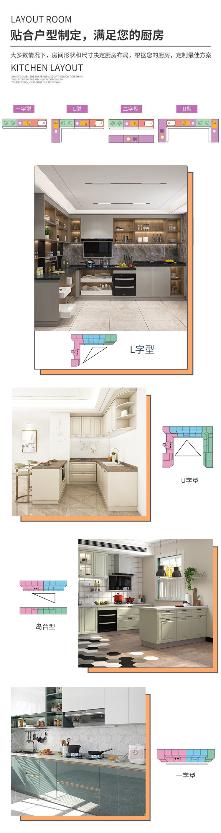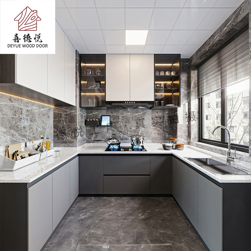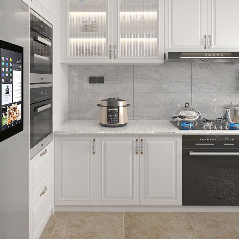 Встроенные кухонные шкафы для всего дома с столешницами из кварцевого камня для современных простых маленьких квартир