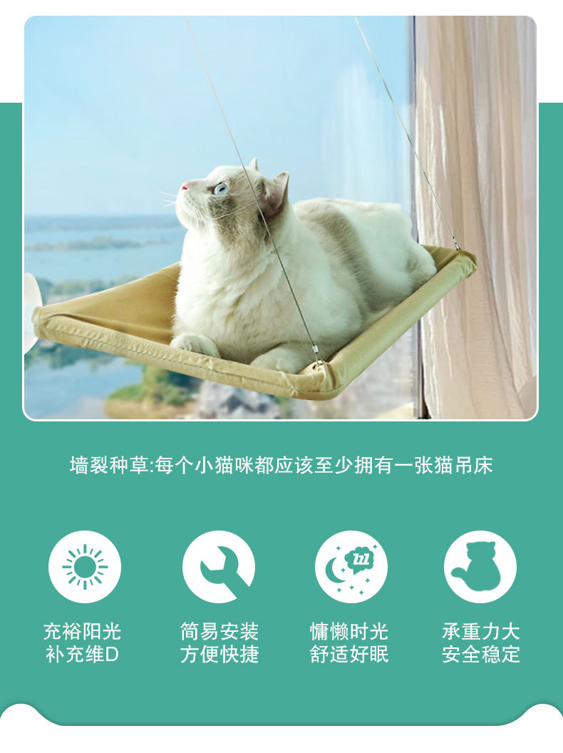 Кошачий гамак-качели складной подвесной для хранения, всесезонный, с вентиляцией, с очень большими присосками, для загара и наблюдения