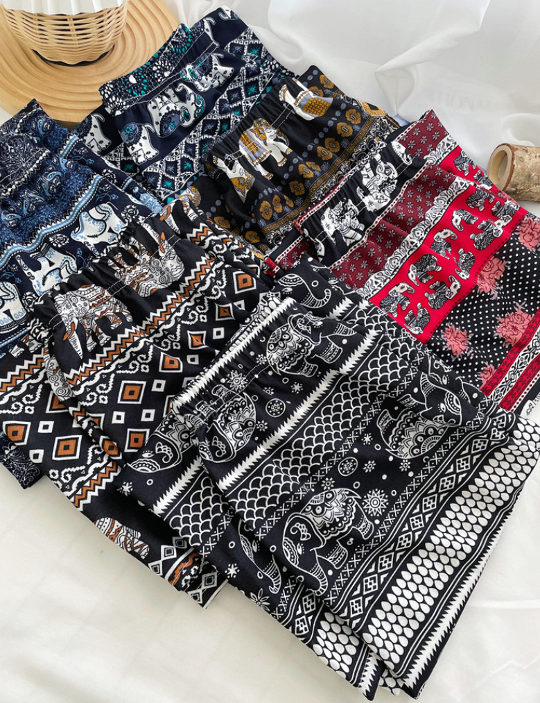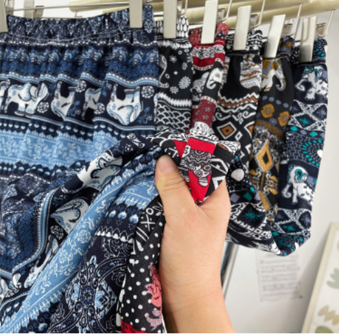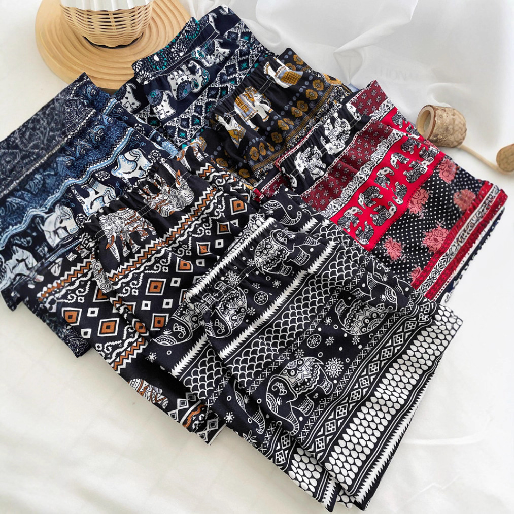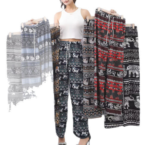 Женские летние тонкие брюки-шаровары в этническом стиле с высокой талией, прямые свободные пляжные брюки из Юго-Восточной Азии, придающие ногам удлиненный вид