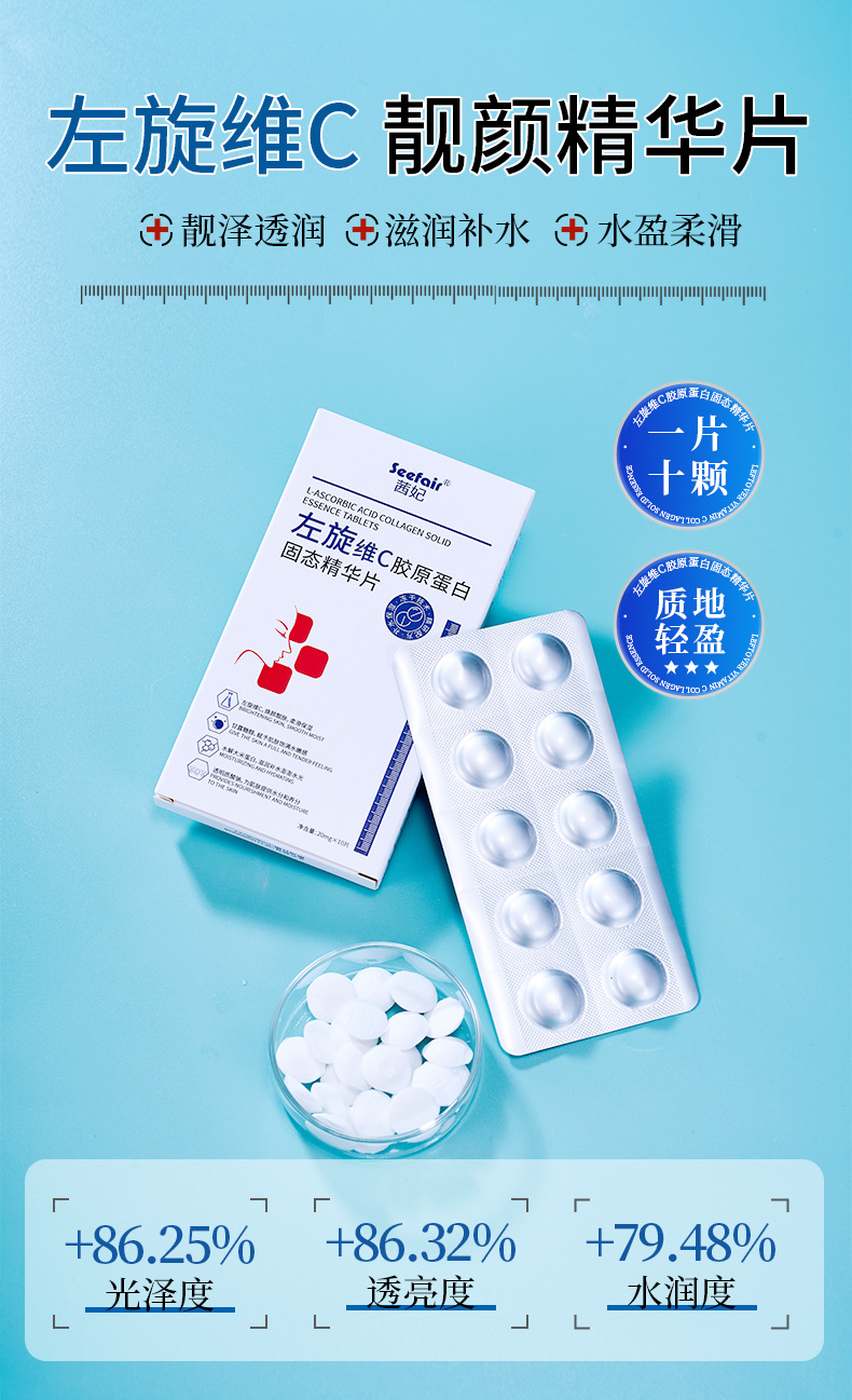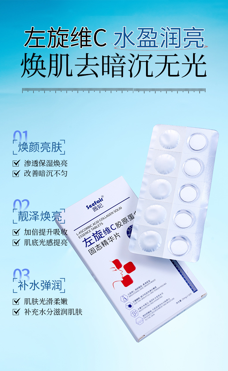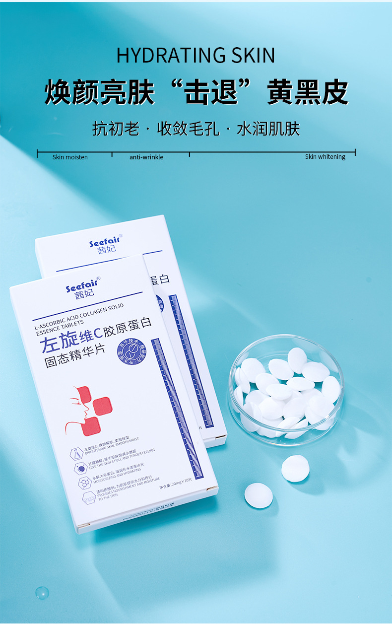 Горячий продукт электронной коммерции Xifei L-VC коллагеновые твердые таблетки с эссенцией, увлажняющие, увлажняющие и осветляющие тон кожи VC Essence