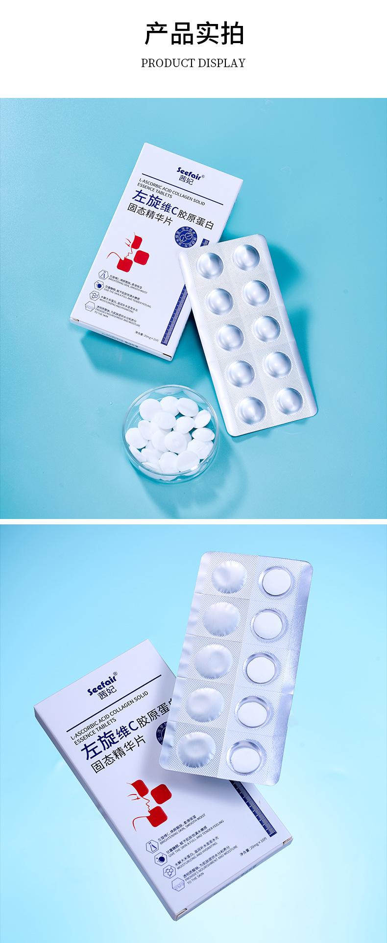 【QF-4587】Таблетки с твердой эссенцией коллагена Qianfei L-витамина С