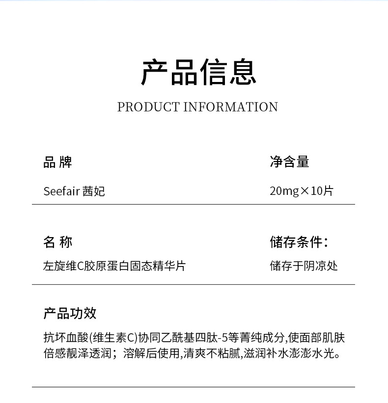 Таблетки с твердой эссенцией коллагена Seefair L-витамин С