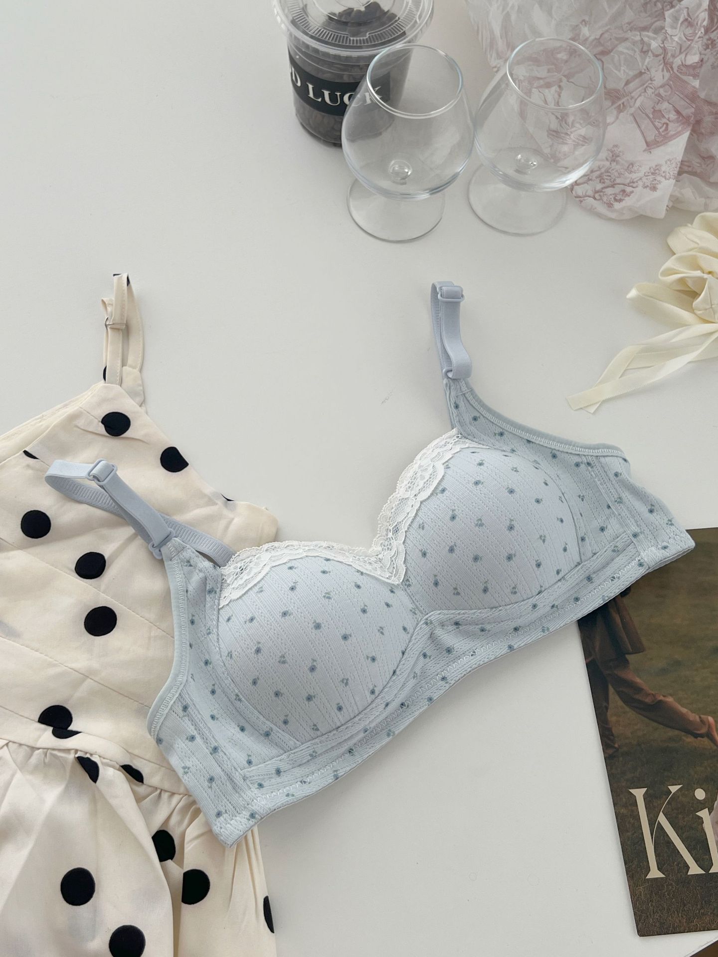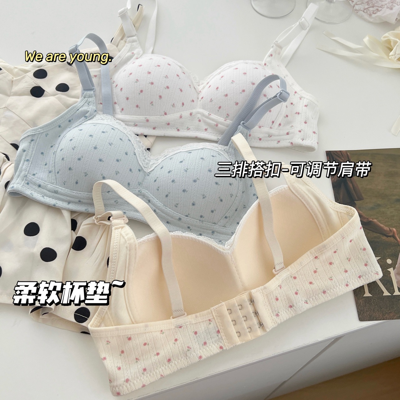 Оригинальный запатентованный бюстгальтер с цветочным принтом для девочек, для небольшой груди, с эффектом пуш-ап, без косточек, с боковой поддержкой, предотвращающий провисание, студенческий бюстгальтер.