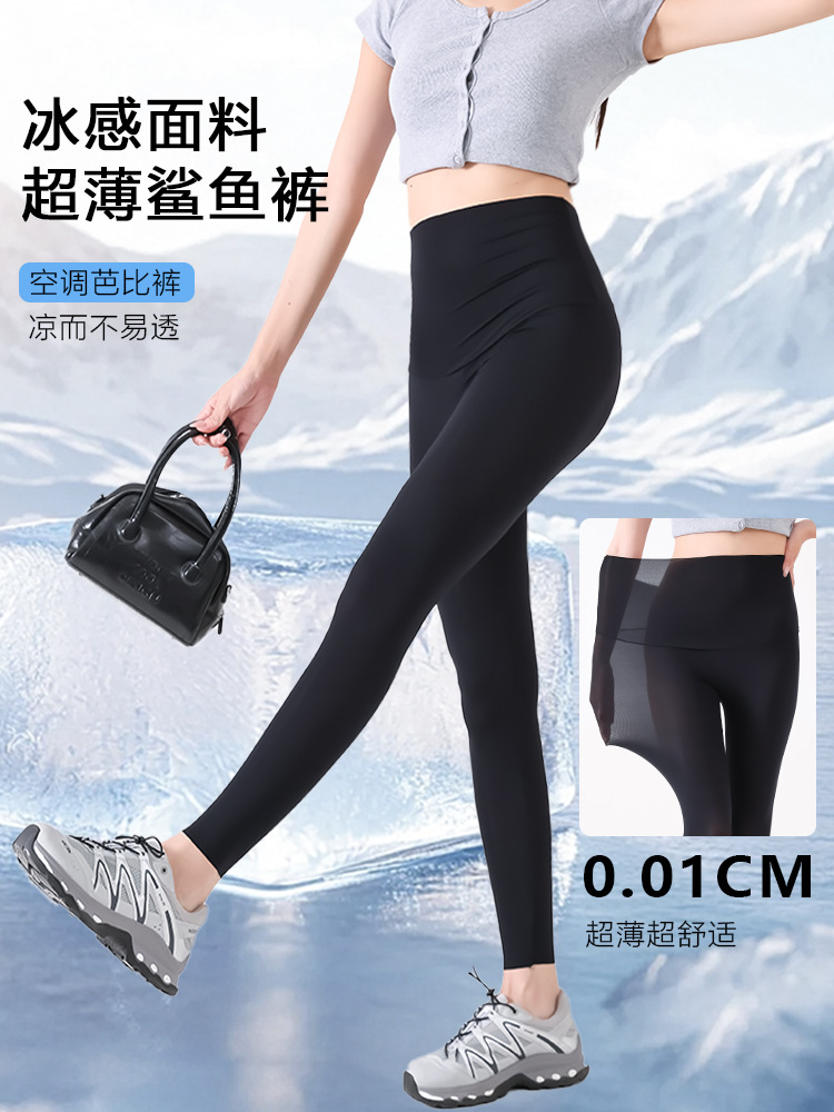 Брюки из ледяного шелка с кондиционером, молочная кожа, акула, высокая талия, можно носить на улице, защита от солнца, Барби, леггинсы для йоги большого размера, женские тонкие летние