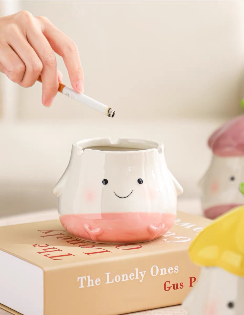 Фиолетовая керамическая пепельница; Пепельница из желтой керамики; Розовая керамическая пепельница