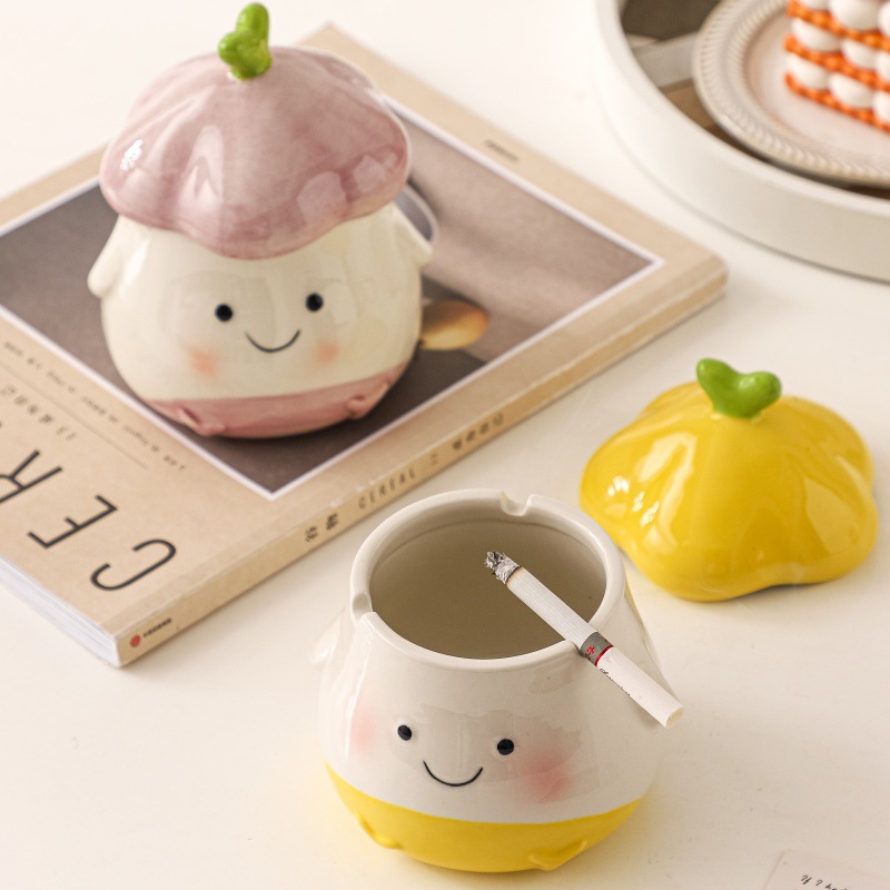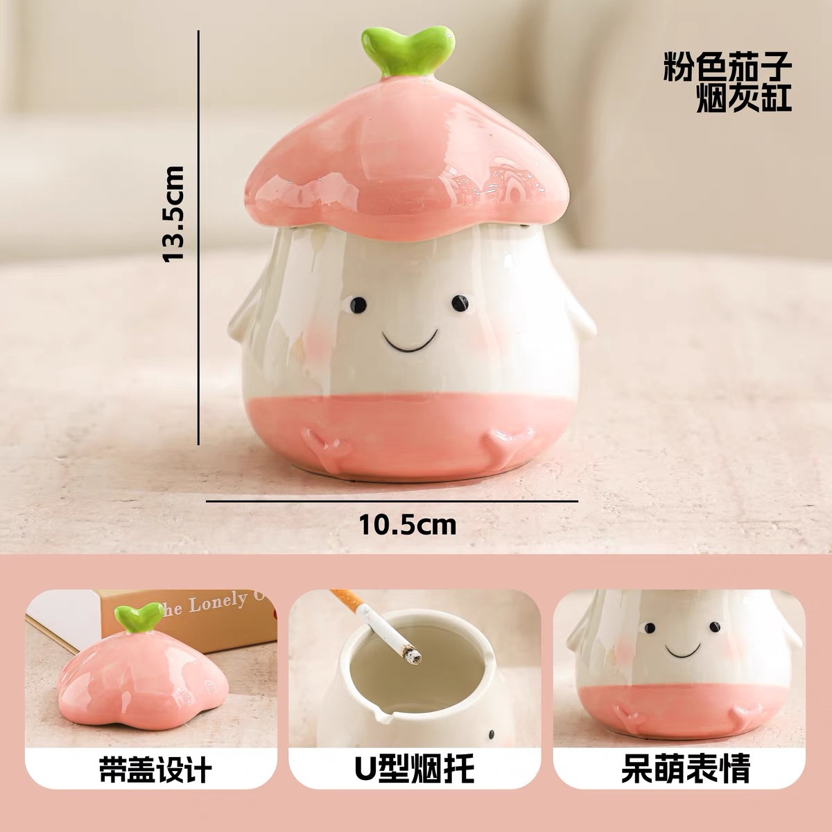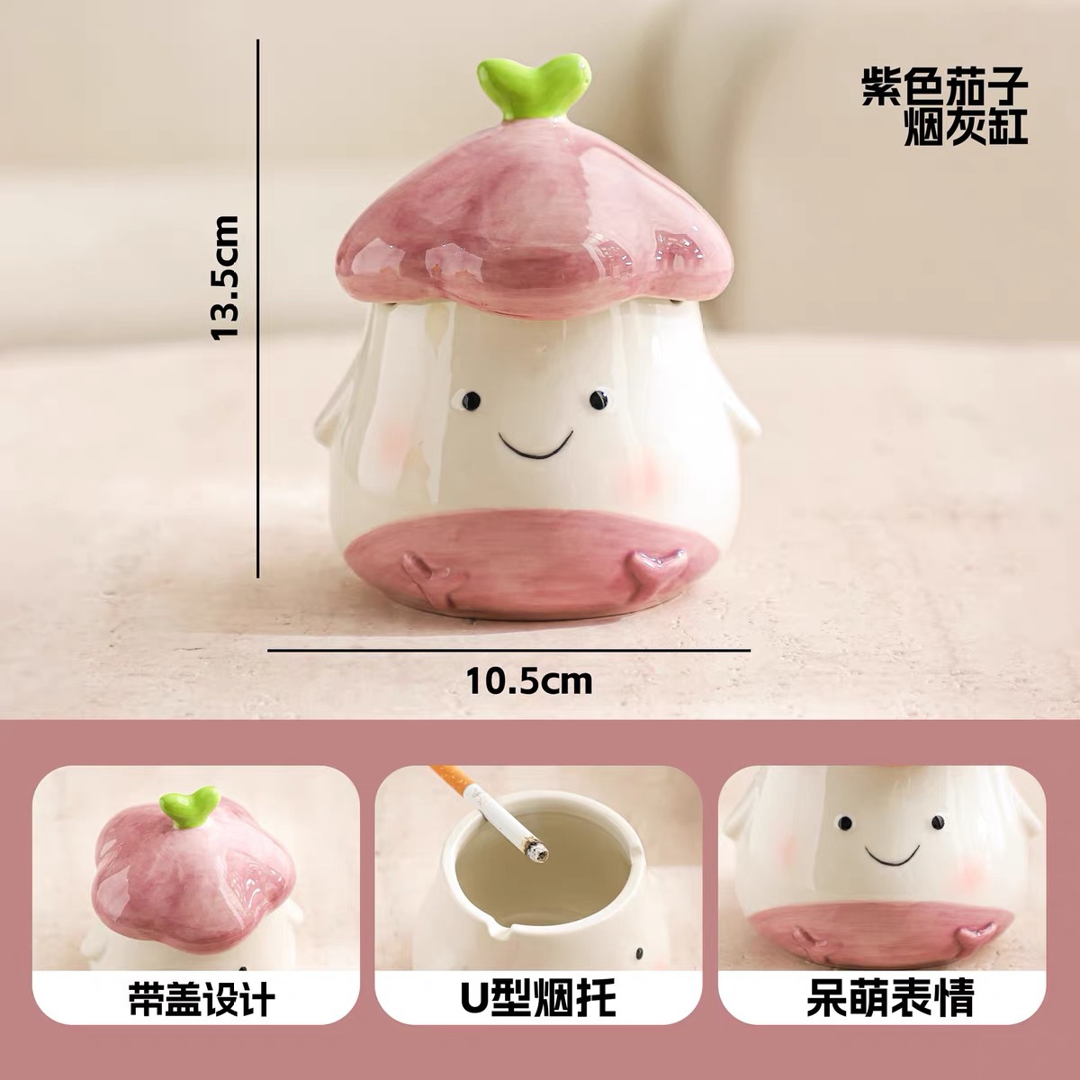 Милая мультяшная пепельница в виде баклажана с крышкой для предотвращения дыма, домашняя гостиная, офис, рабочий стол, высококачественные украшения для пепельницы