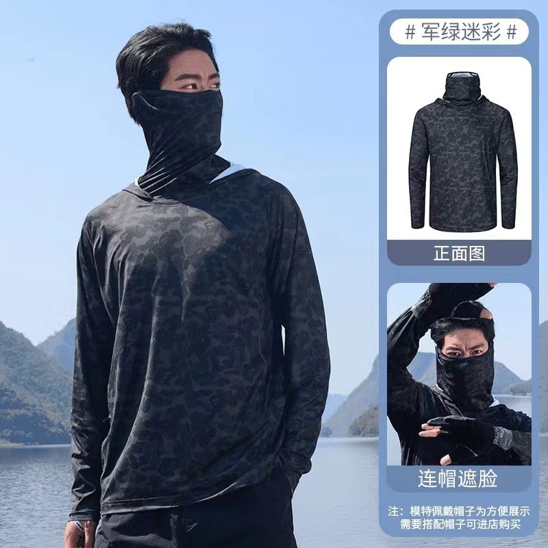 Сетчатая одежда из ледяного шелка, 25 мужских летних ультратонких камуфляжных, закрывающих лицо, дышащая, быстросохнущая одежда для рыбалки из ледяного шелка