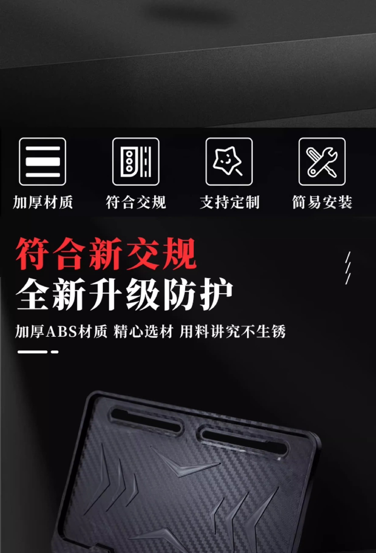 Рамка заднего номерного знака мотоцикла универсальная для скутеров, узор из углеродного волокна, новые правила дорожного движения, утолщенная твердая рамка.