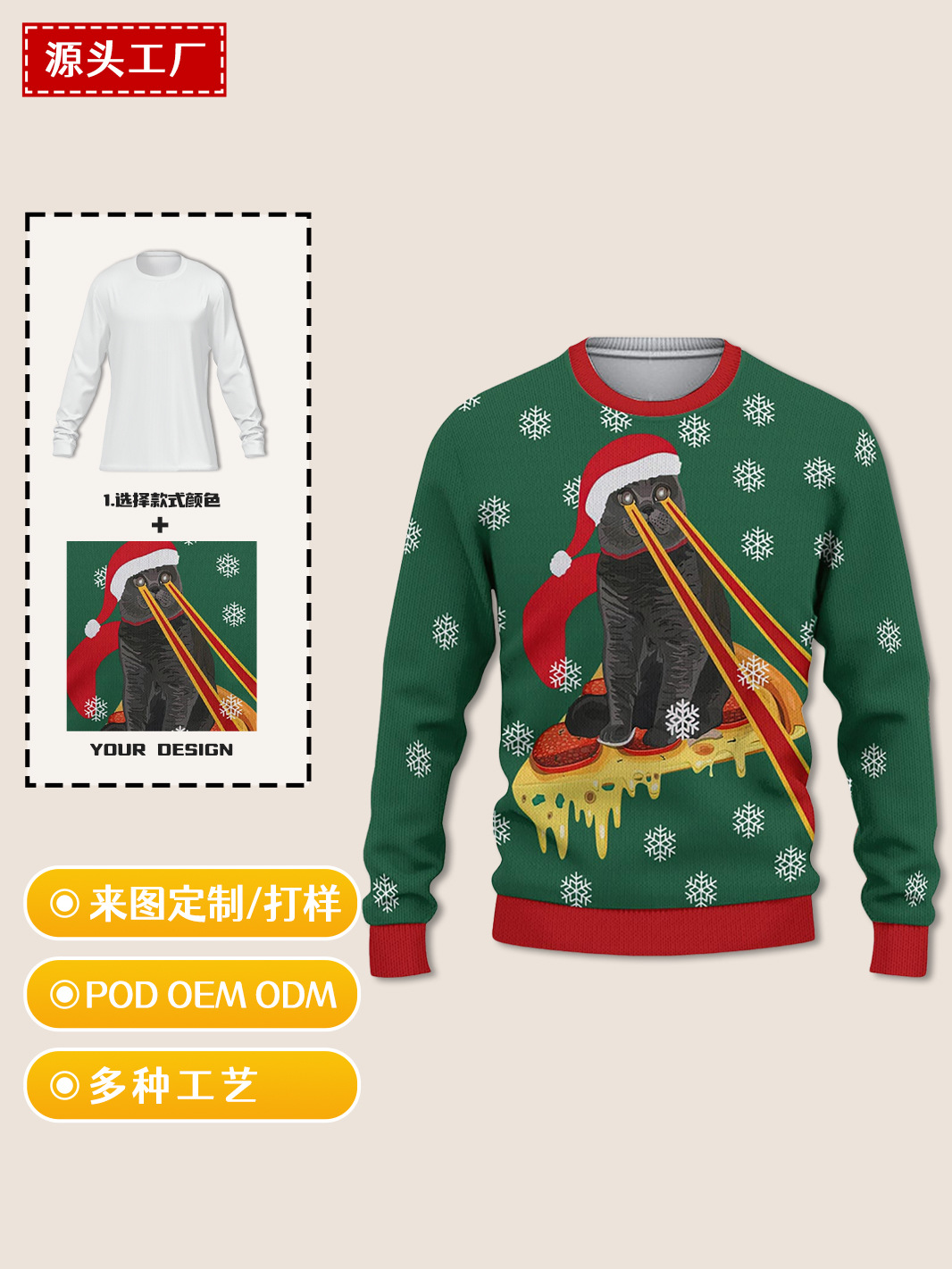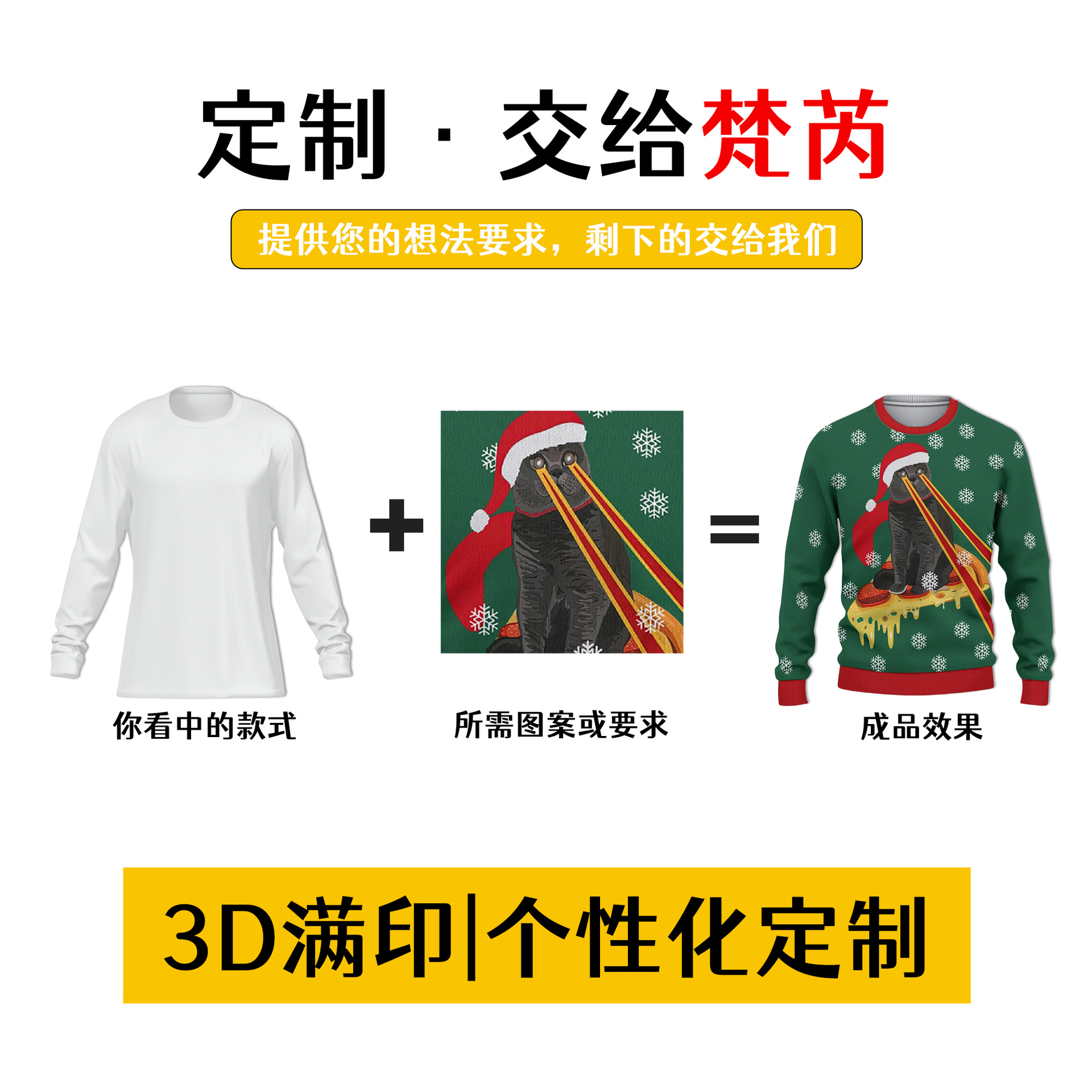 Кастомный свитер POD Amazon с новой 3D-печатью, круглым вырезом, имитацией трикотажа, длинными рукавами, свободного кроя, для осени и зимы, повседневный стиль.