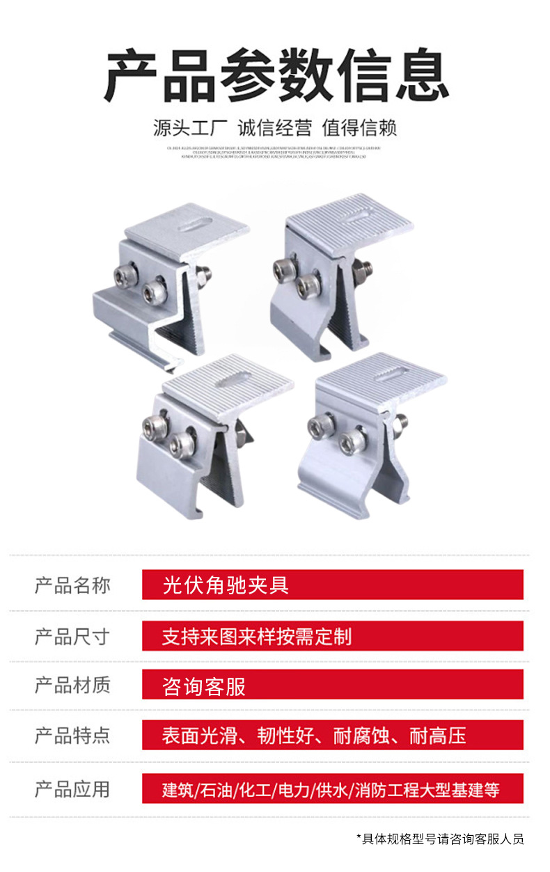 Фотоэлектрические угловые зажимы, аксессуары для фотоэлектрических кронштейнов из алюминиевого сплава, зажимы из алюминиевого сплава для крепления цветной стальной черепицы, фотоэлектрические зажимы.