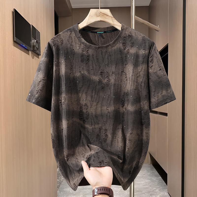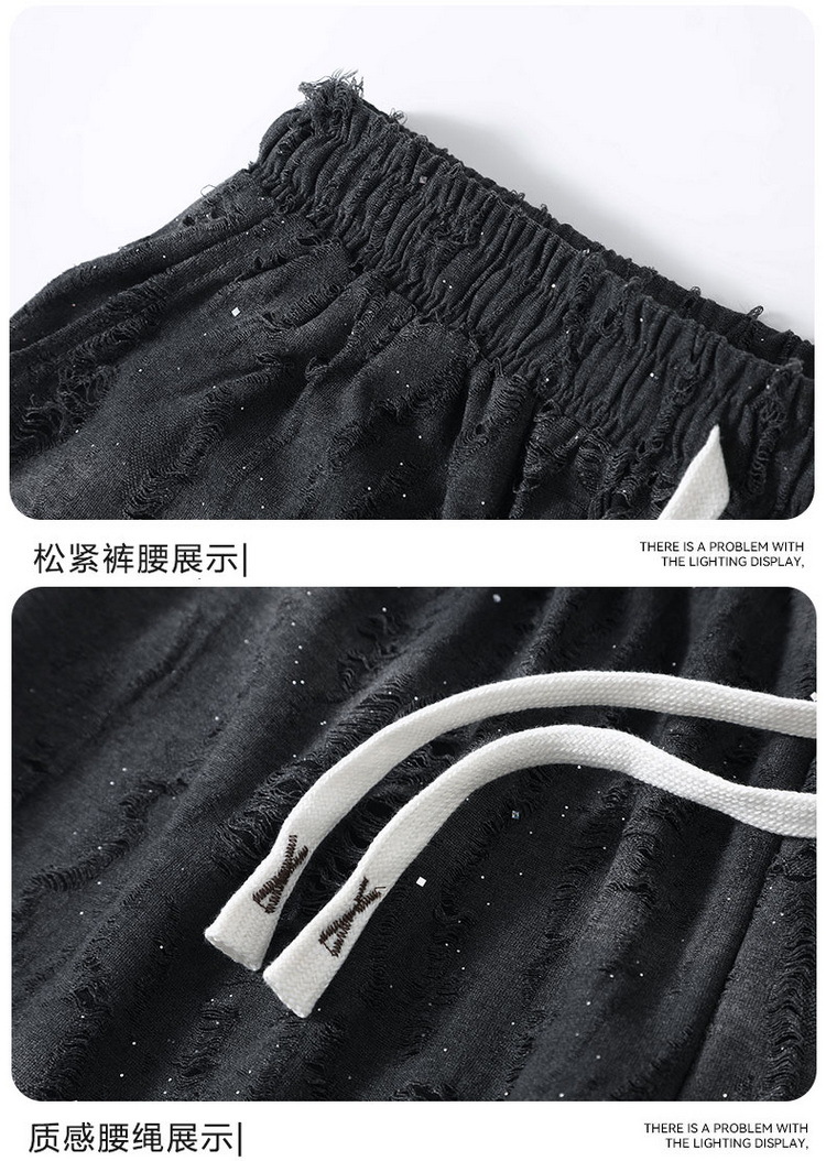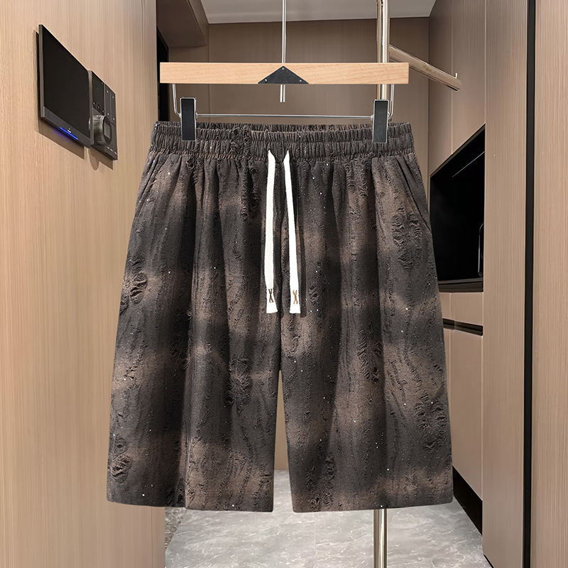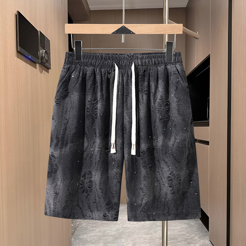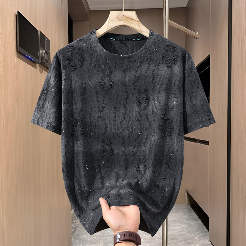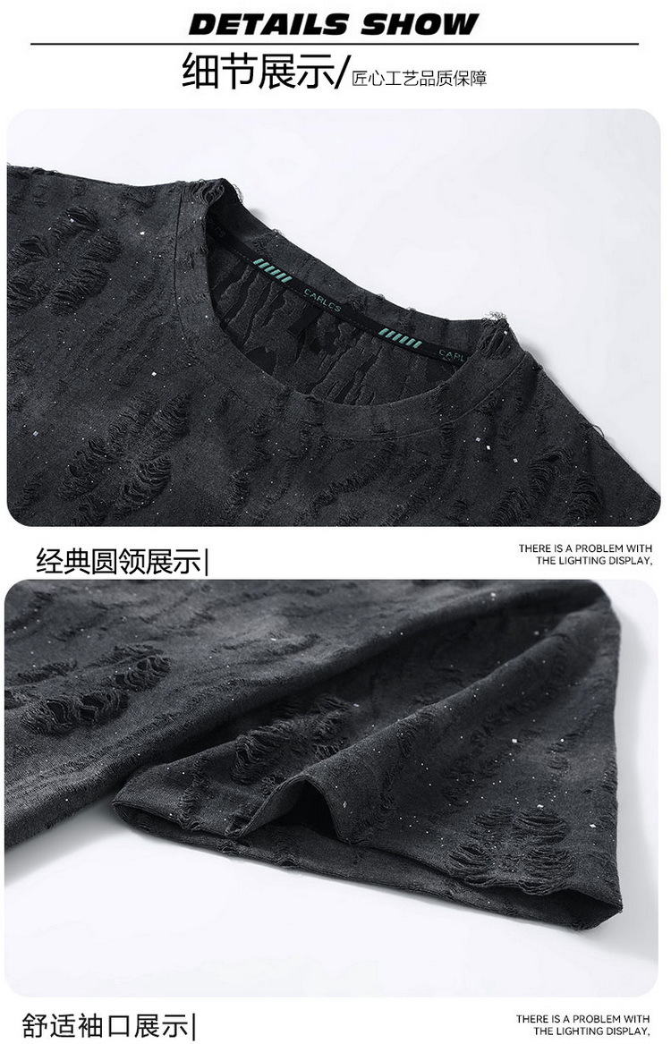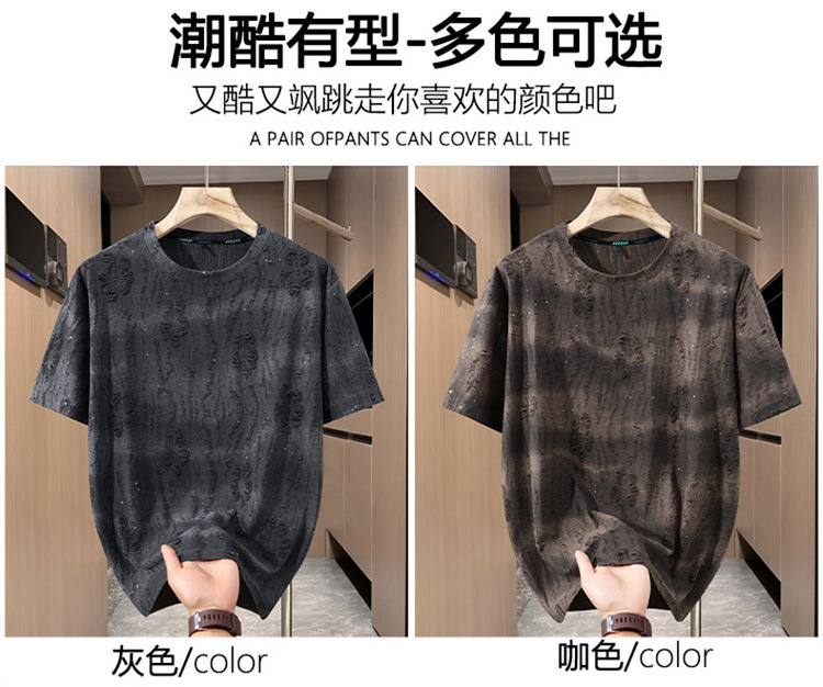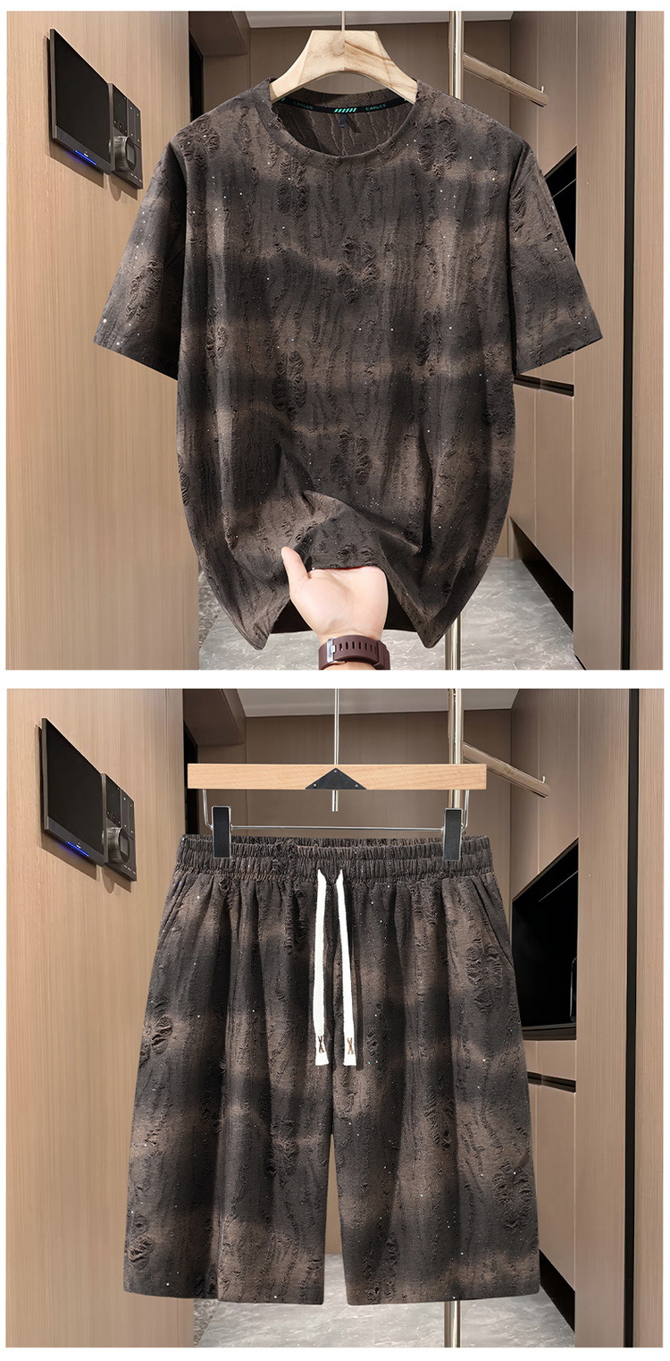 Очень большой размер 150kg летний мужской костюм больших размеров с половиной рукавов рваный круглый вырез футболка с короткими рукавами шорты комплект из двух предметов