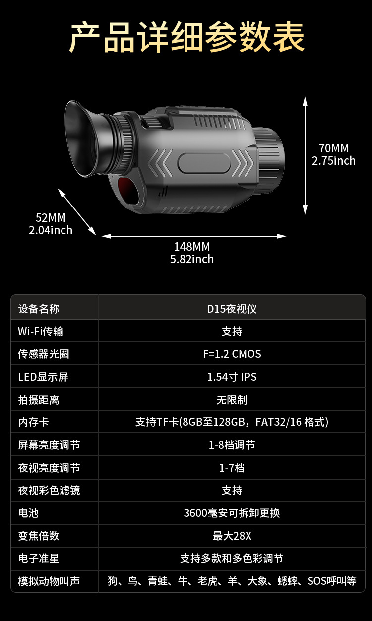D15 HD инфракрасное устройство ночного видения, имитация звука животных, Wi-Fi, полностью черная, красочная камера разведки с визуальным зрением