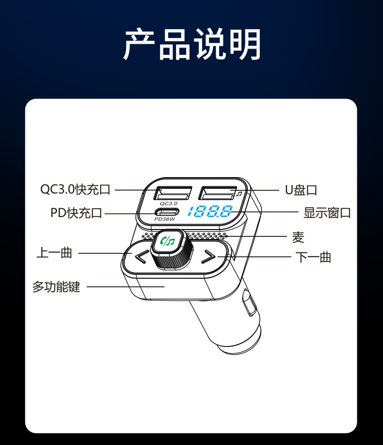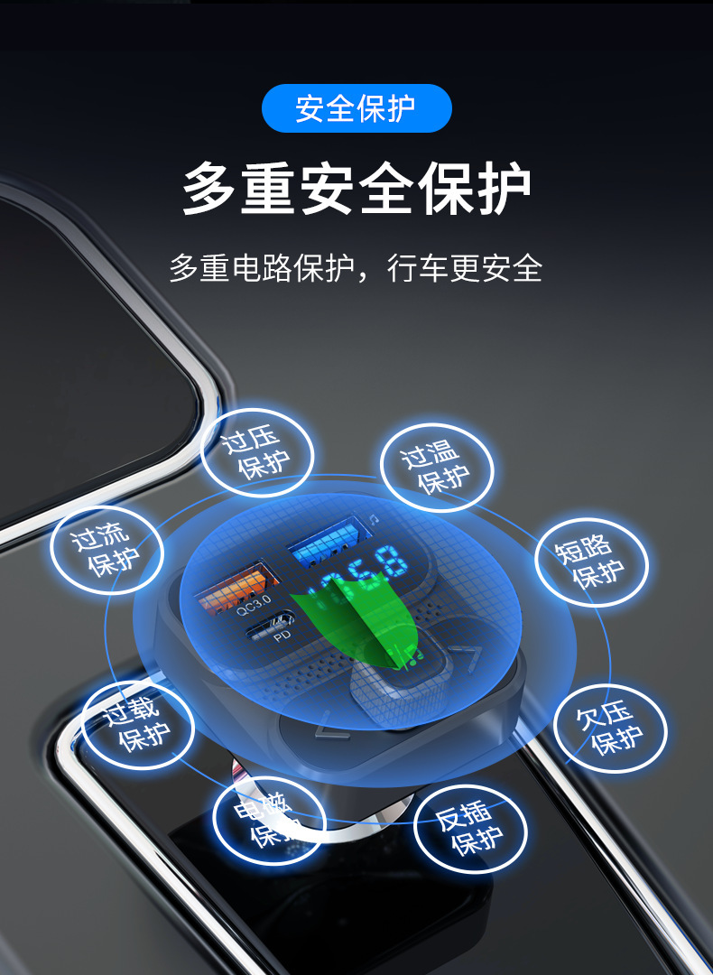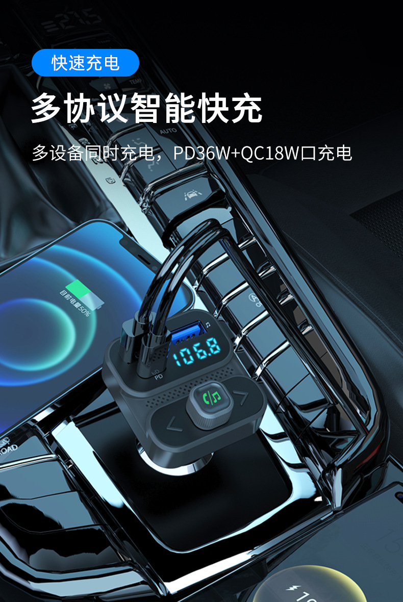 Многофункциональный автомобильный MP3-плеер U-диск, автомобильный атмосферный светильник, двойной PD, быстрая зарядка, автомобильный Bluetooth FM-передатчик
