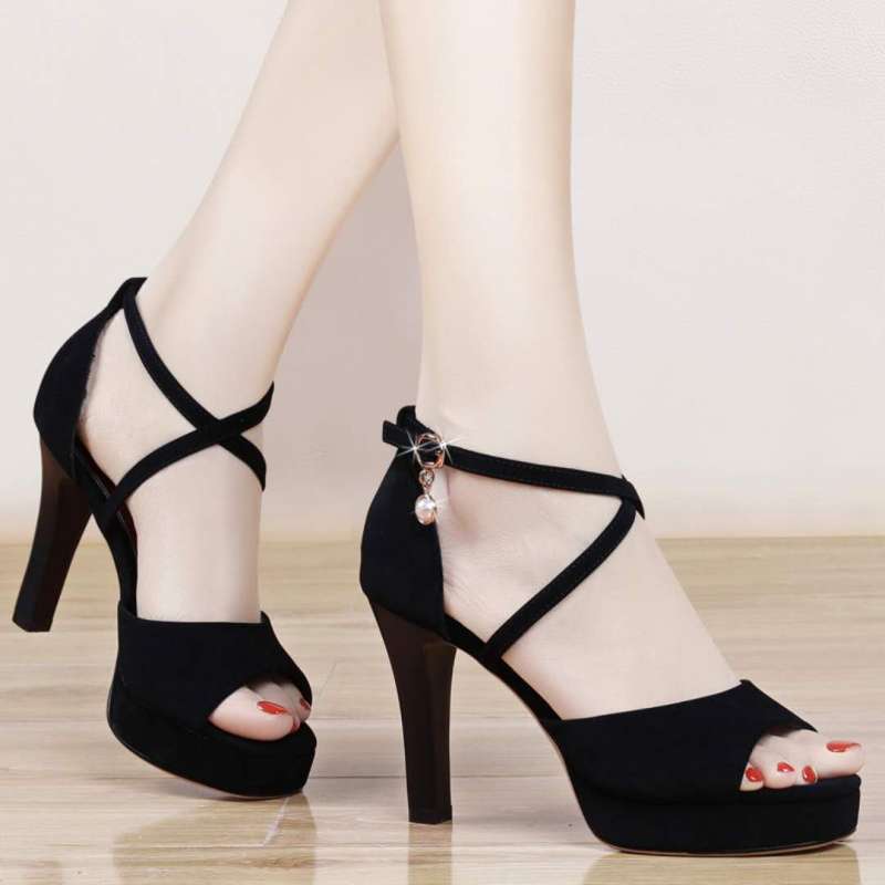 Летние женские босоножки, туфли на высоком каблуке, новая женская водонепроницаемая платформа, сексуальные туфли с рыбьим ртом, босоножки на шпильке, женские рабочие туфли с пряжкой.