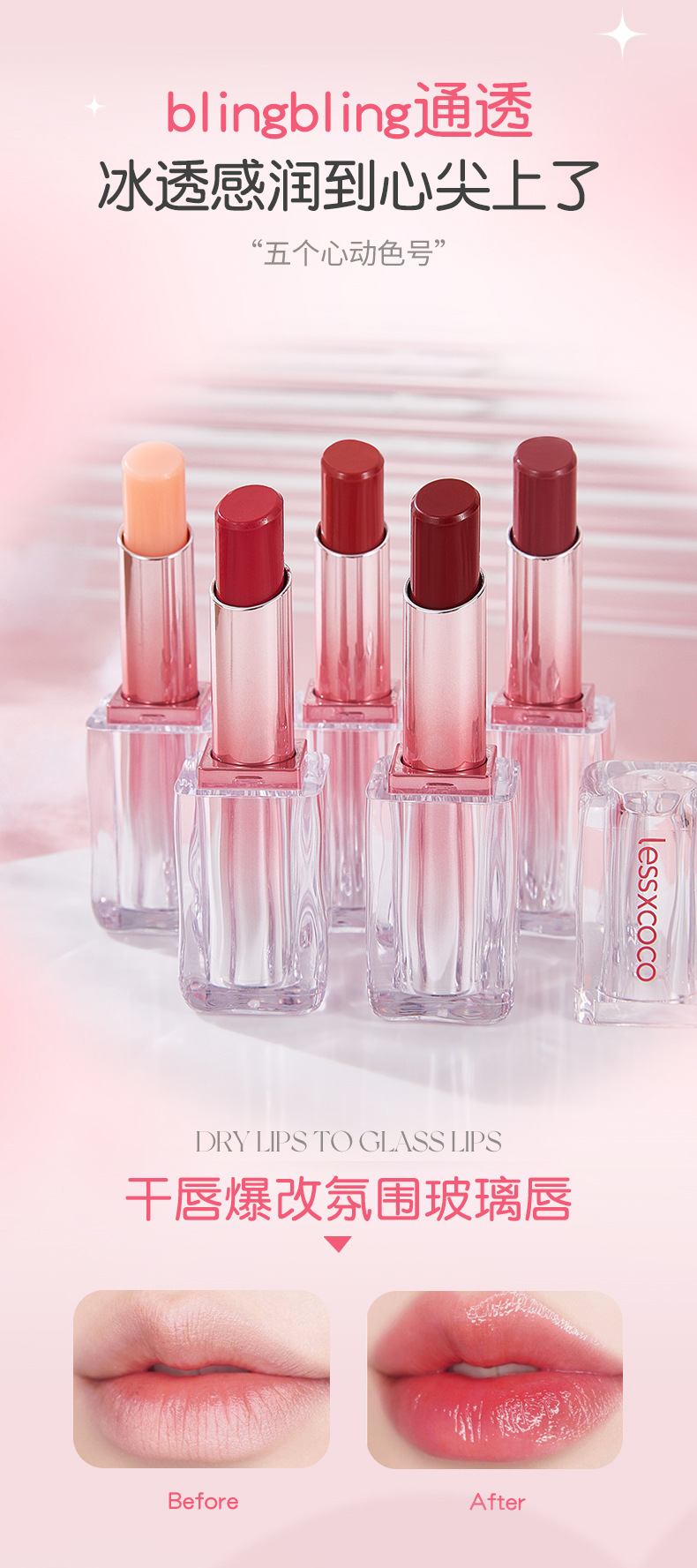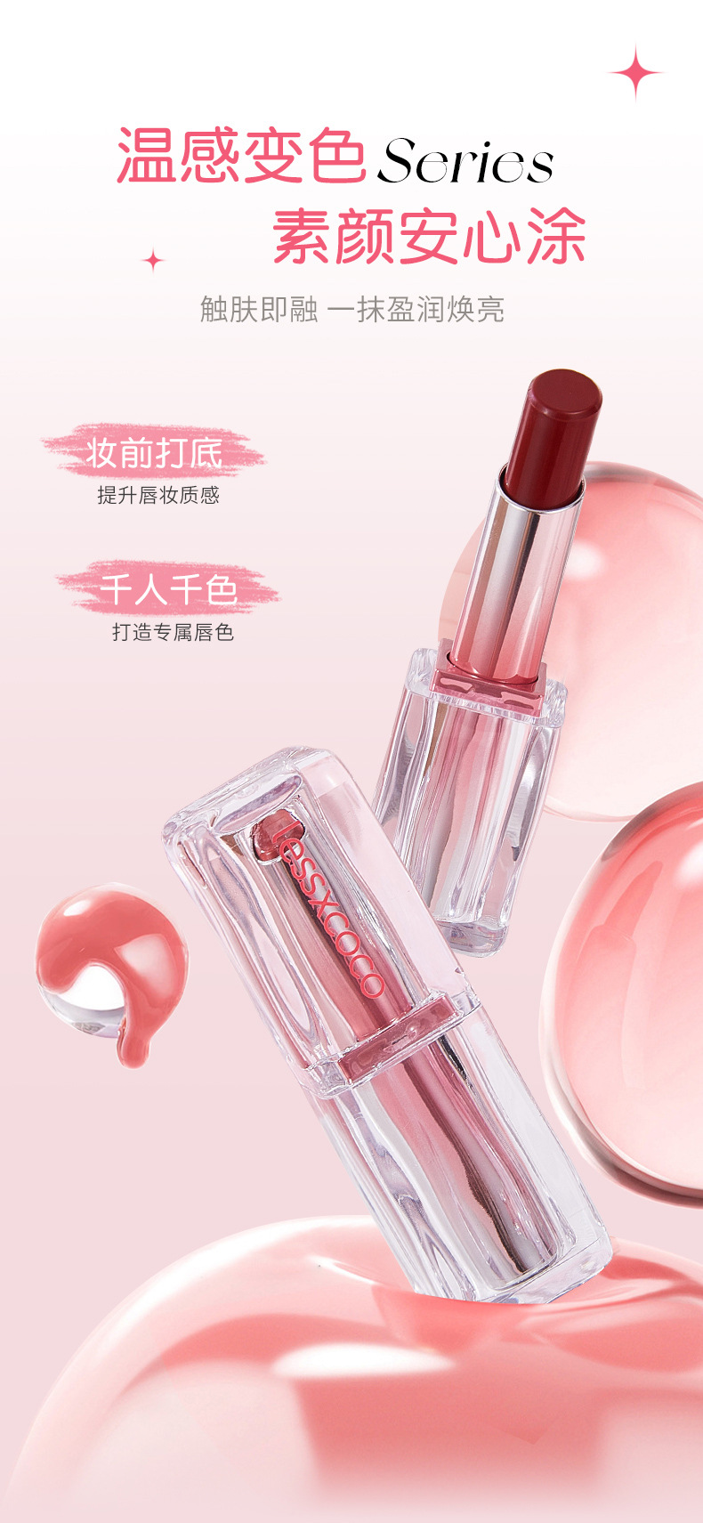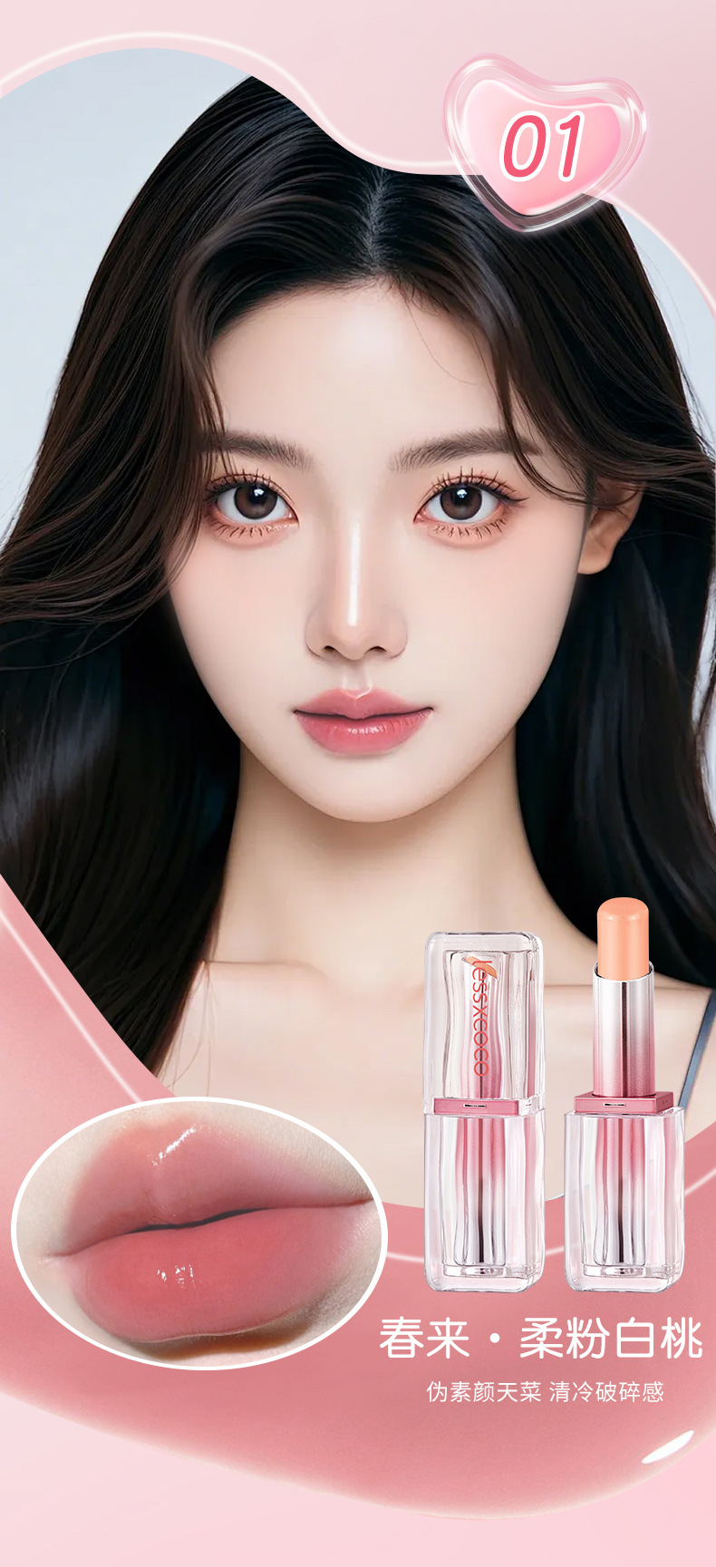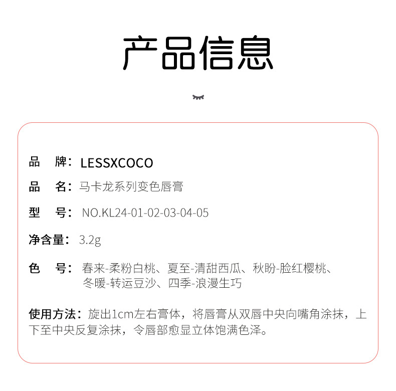 Теплый увлажняющий уход за губами серии LESSXCOCO Macaron (приходит весна — нежно-розовый, белый персик)