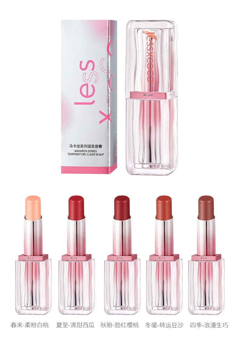 Температурно-изменяющая помада серии Macaron (Spring Comes - Soft Pink White Peach); Температурно-изменяющая помада серии Macaron (теплая зимой - паста из бобов); Температурно-изменяющая помада серии Macaron (Qiu Pan-Blush Cherry); Губная помада, меняющая температуру серии Macaron (четыре сезона-романтическая идеальна); Температурно-изменяющая помада серии Macaron (Summer Solstice-Sweet Watermelon)