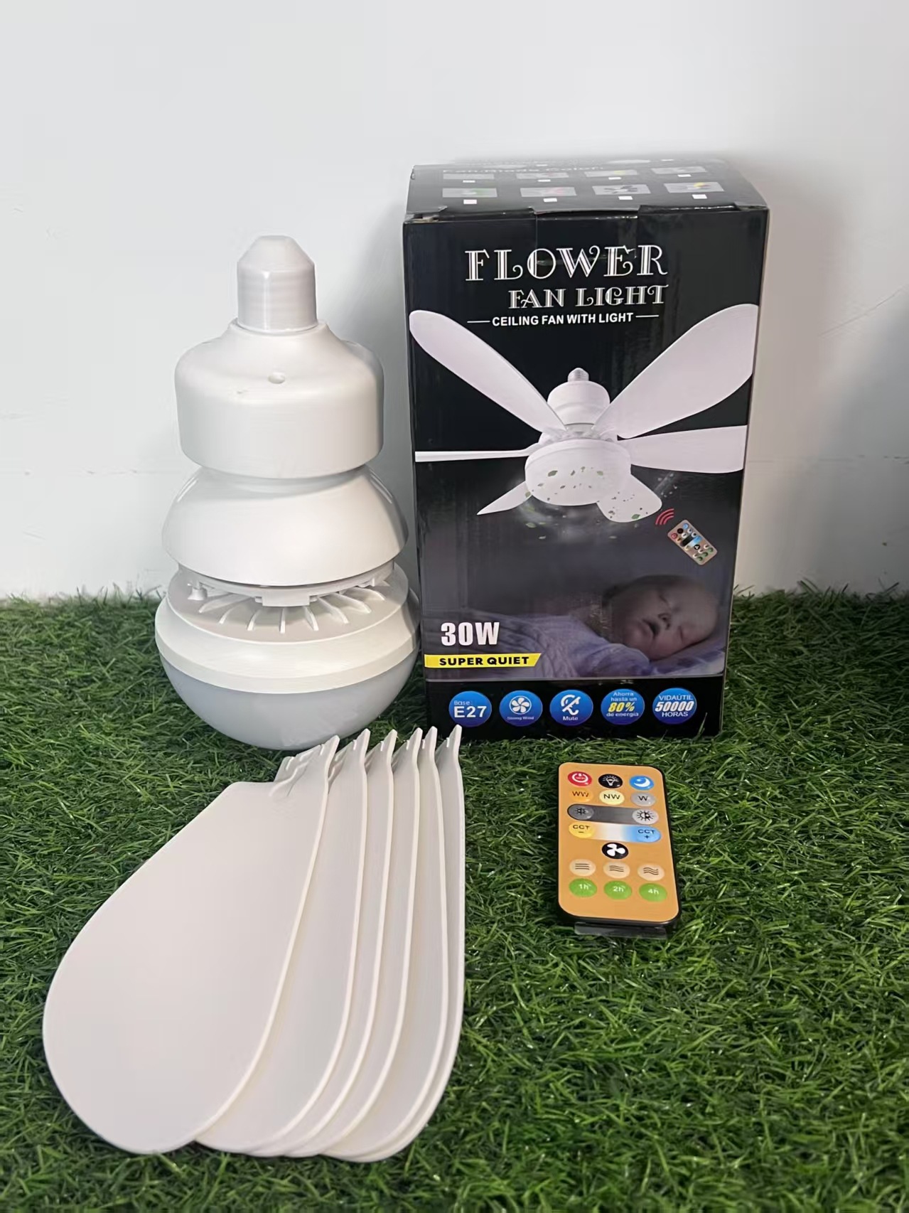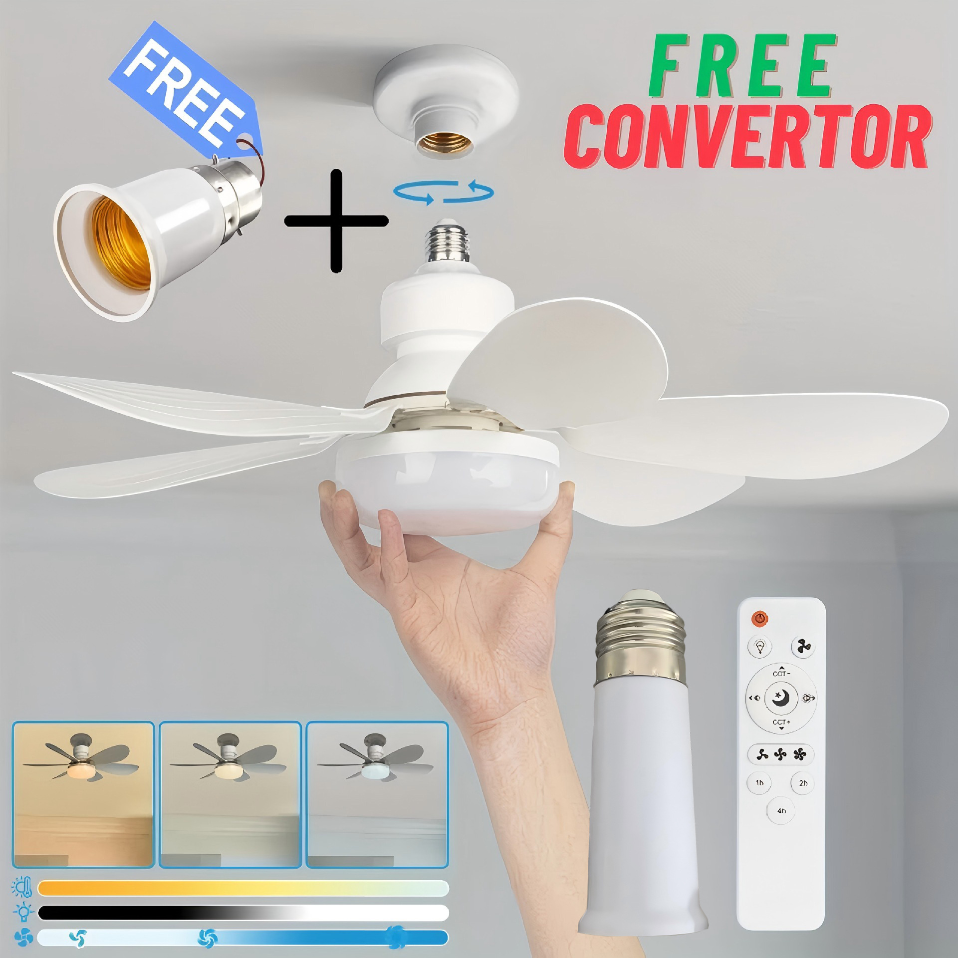 Трансграничный новый винт E27, бытовой бесшумный маленький вентилятор, умный потолочный вентилятор, светильник для вентилятора для ресторана, спальни