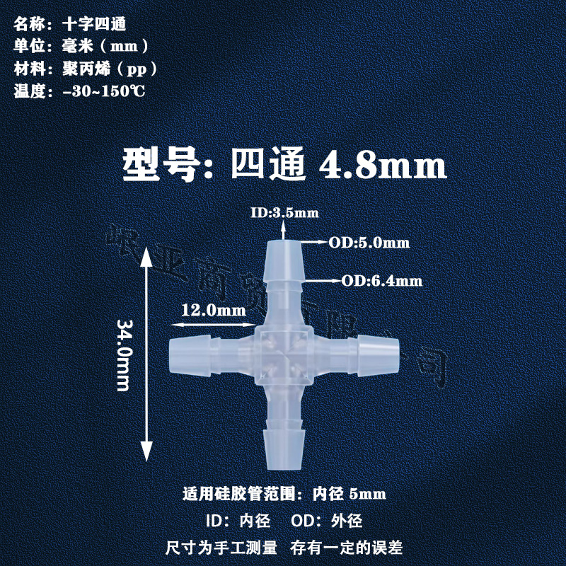 Шланг 2,4 мм, пластиковый четырехходовой пищевой четырехходовой боковой четырехходовой пластиковый разъем, многоканальный крестообразный, устойчивый к коррозии, высокая температура