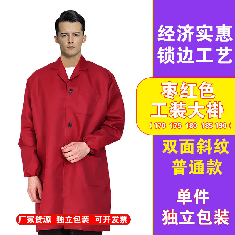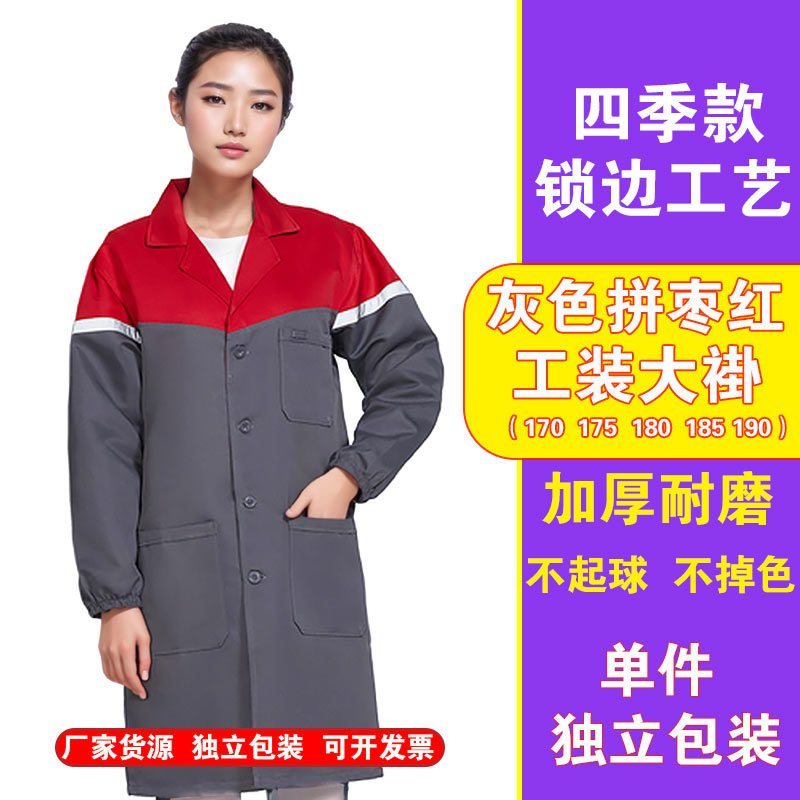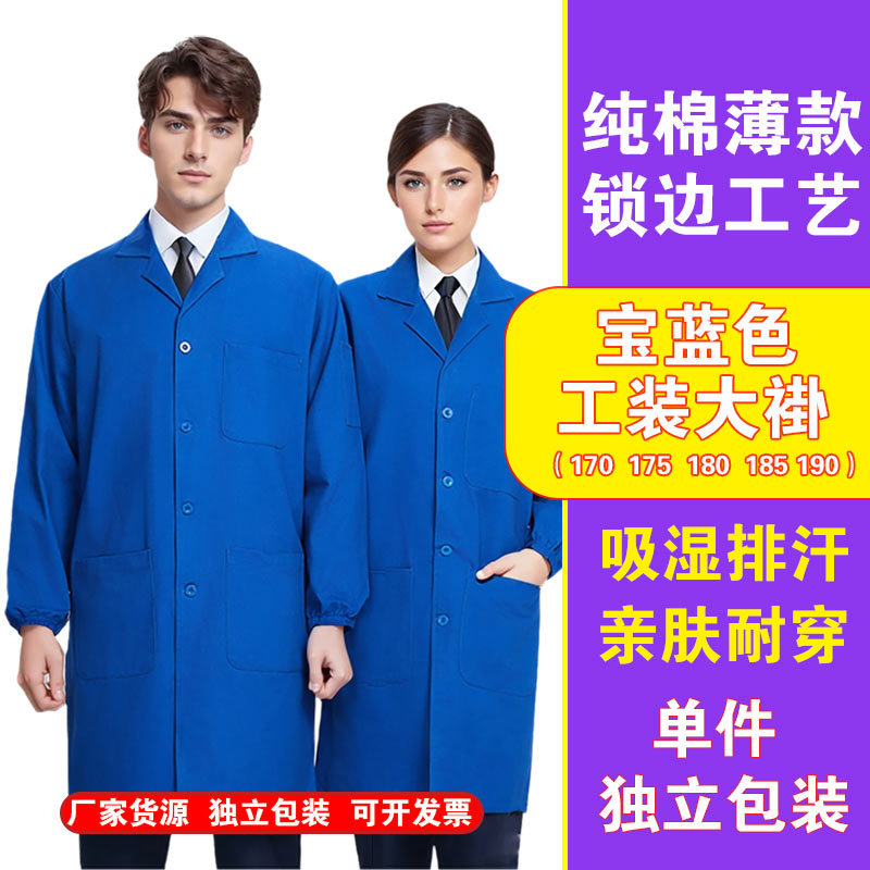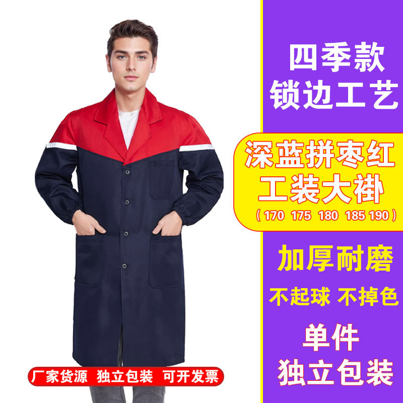 Синее пальто, длинная защитная одежда, износостойкая рабочая одежда, устойчивая к пятнам лабораторная одежда из чистого хлопка, красная рабочая одежда, складская одежда, одежда для защиты труда
