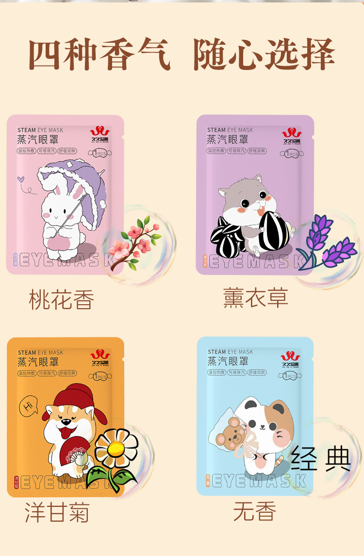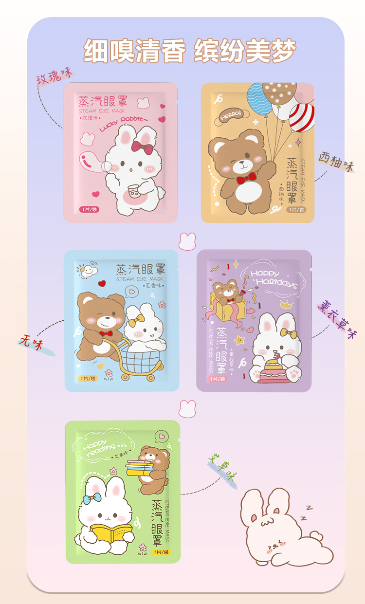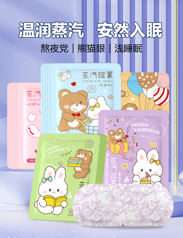 Мультяшная версия паровой маски для глаз оптом для снятия усталости глаз, затенения, нагревательной повязки для глаз с постоянной температурой, самонагревающейся защитной повязки для глаз для сна