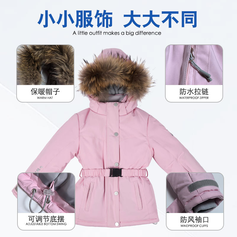 Детская утолщенная теплая хлопковая куртка для девочек, уличный лыжный костюм с большим меховым воротником, на заказ.