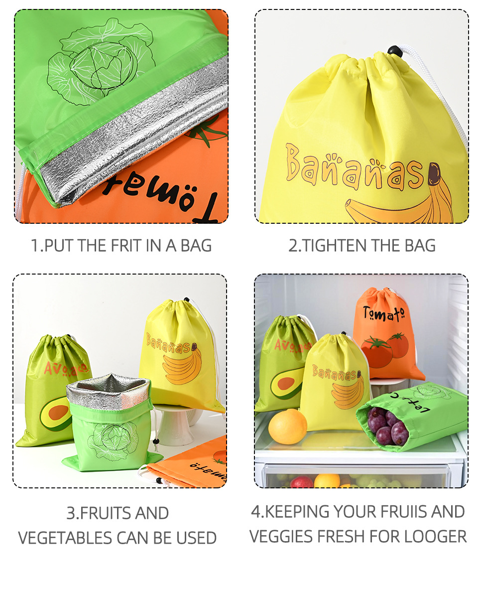 Сумка для хранения, изолированная сумка для покупок, кухонная сумка для хранения предметов первой необходимости, сумка для хранения из полиэстера на шнурке для хранения свежих продуктов