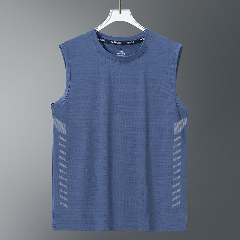 Мужской жилет без рукавов с круглым вырезом, жилет из ледяного шелка, летний жилет для бега, верхняя часть тела, спортивный жилет для льда, быстросохнущая футболка без рукавов
