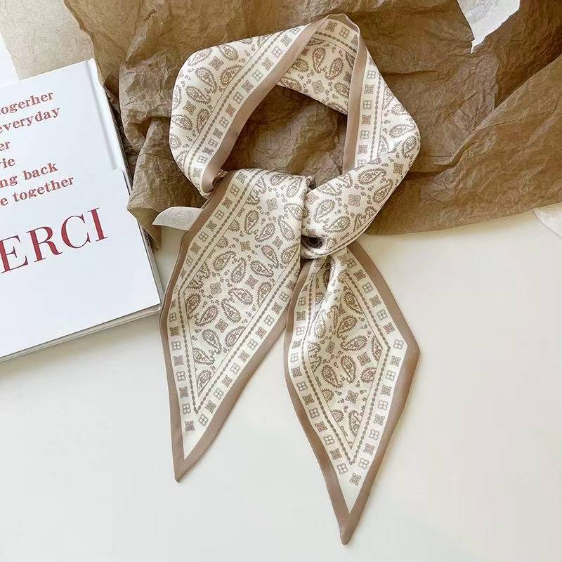 Корейский ретро шелковый шарф с узором пейсли, элегантный маленький шарф, универсальный аксессуар для волос, длинная лента, подарочная коробка, лента.
