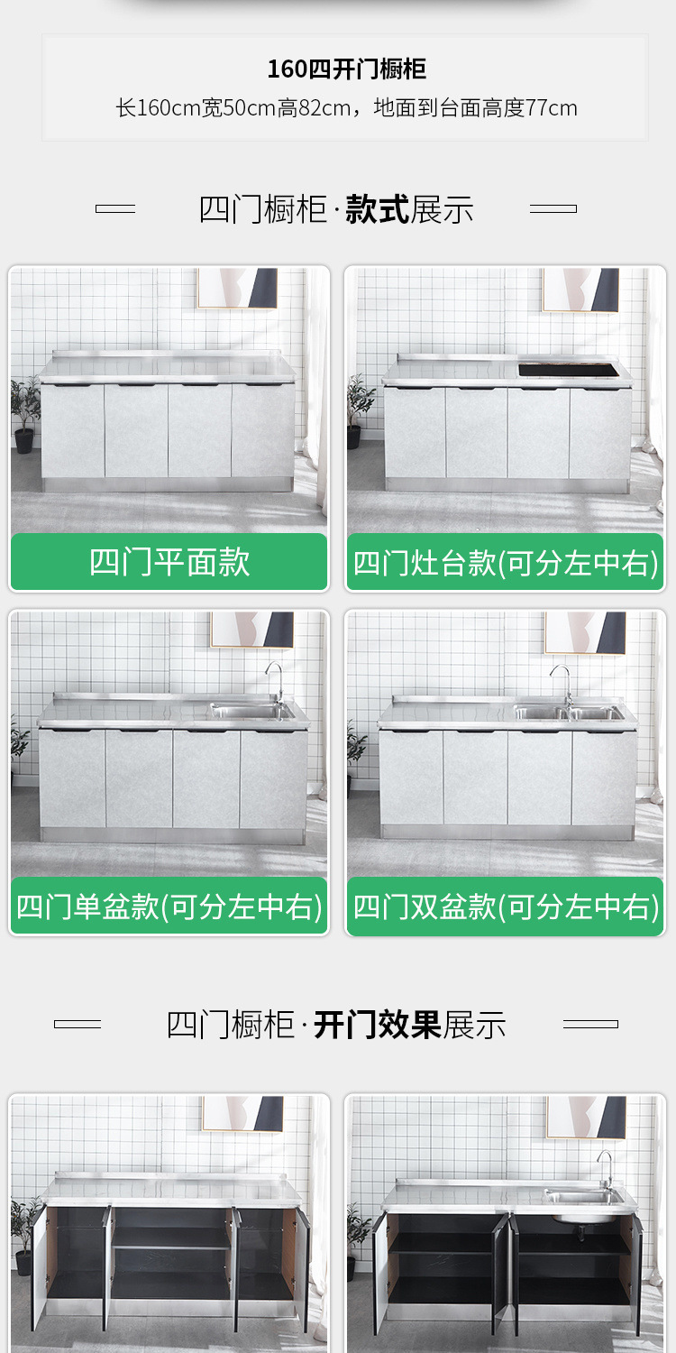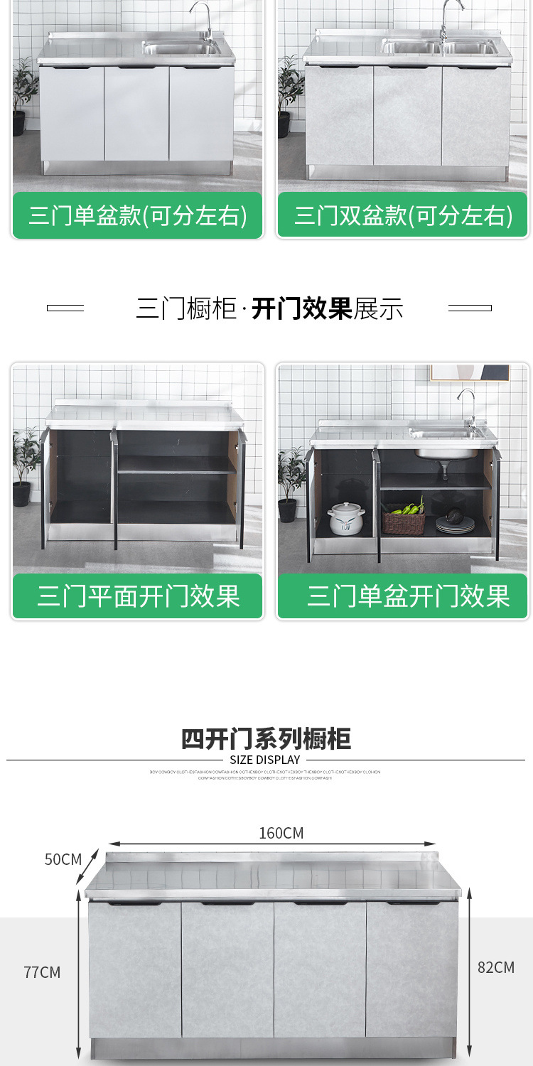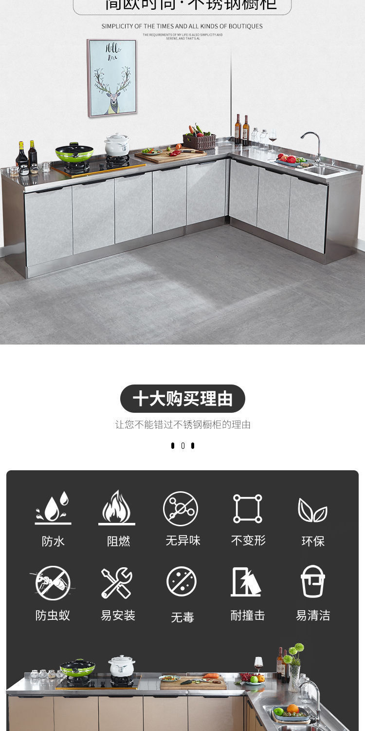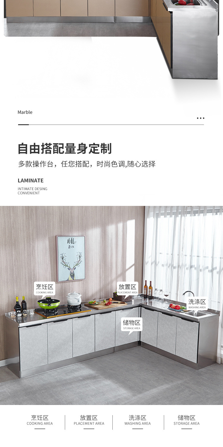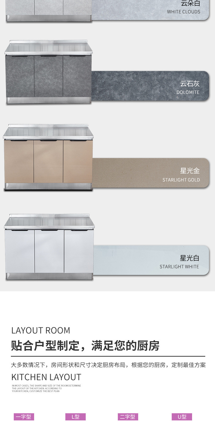 Бытовые экономичные шкафы из нержавеющей стали, цельнометаллические интегрированные кухонные шкафы для хранения, простая сборка, кухонные шкафы для хранения