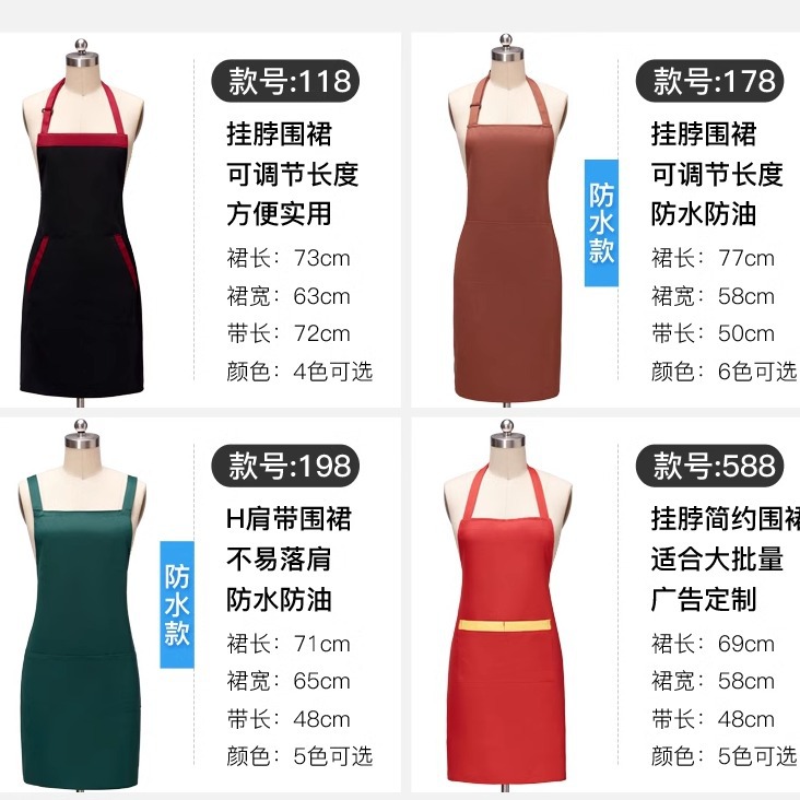558 оранжевый фартук с воротником-хомутом; 558 желтый фартук с воротником-халтером; 558 зеленый фартук с воротником-хомутом; 558 красный фартук с воротником-халтером; 558 фартук с вырезом через шею темно-кофейного цвета; 558 черный фартук с бретелькой на шее; 178 водоотталкивающий фартук с бретелькой на шее; 178 оранжевый фартук с воротником-хомутом; 178 темно-зеленый фартук с воротником-халтером; 178 фартук с вырезом на шее светло-кофейного цвета; 178 бордовый фартук с бретелькой на шее; 178 фартук с воротником-бретелькой темно-кофейного цвета; 198 Водонепроницаемый фартук--; 198 темно-зеленый фартук на плечо; 198 фартук на плечо темно-кофейный; 198 черный фартук на плечо; 198 бордовый фартук на плечо; 198 оранжевый фартук на плечо; 198 красный фартук на плечо