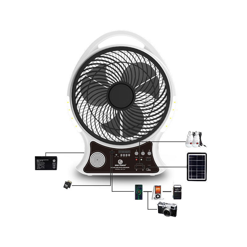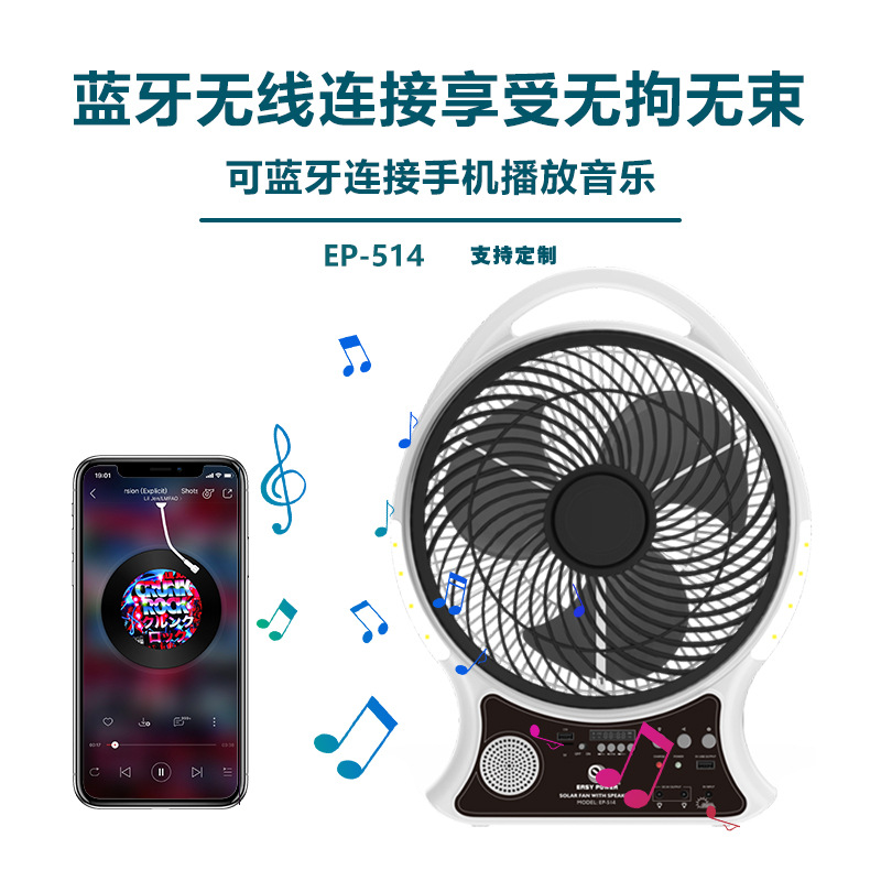 В наличии трансграничный вентилятор, солнечный вентилятор для кемпинга, Bluetooth FM-плеер, с функцией зарядки телефонов, мощный поток воздуха, перезаряжаемое освещение