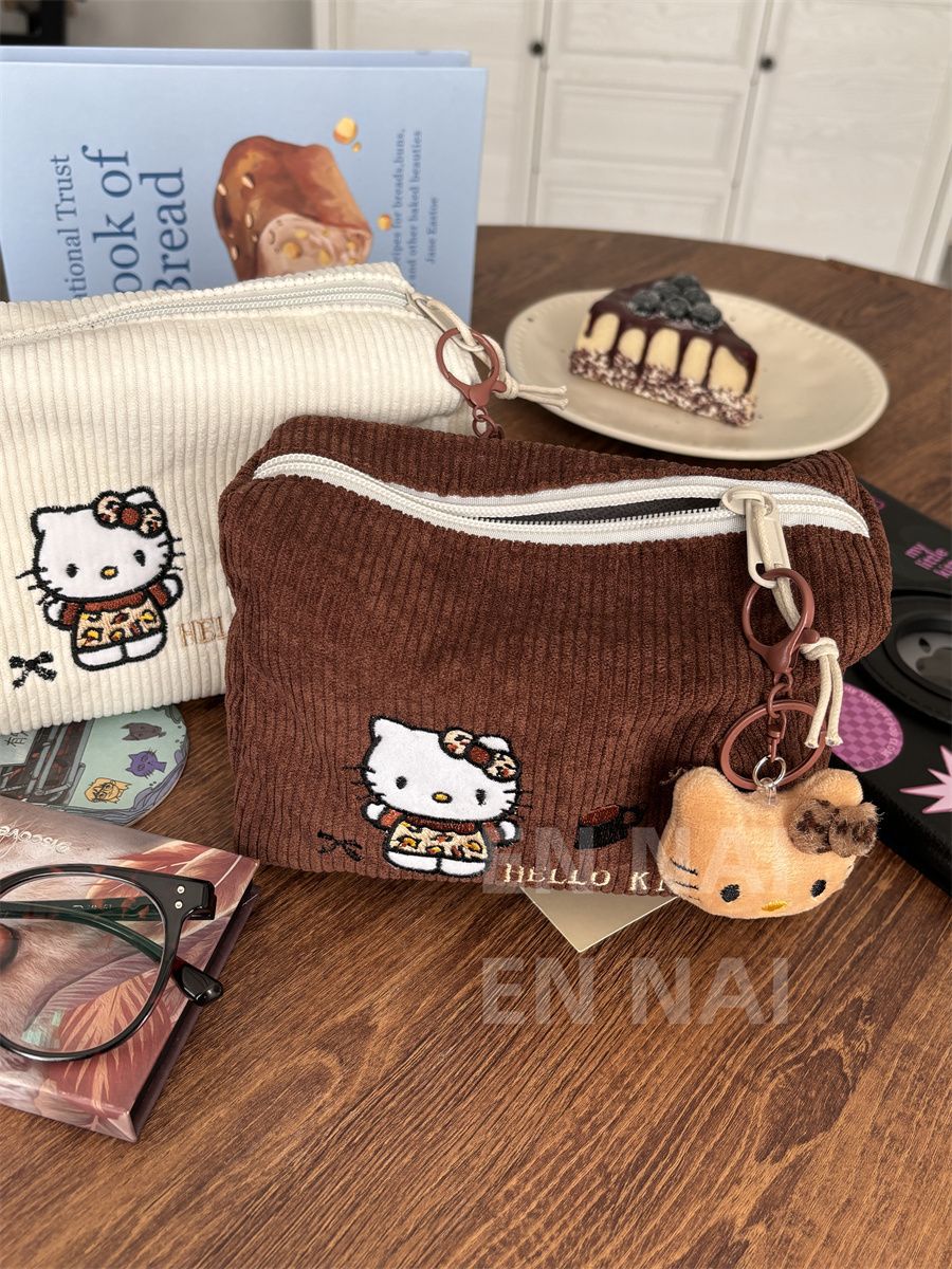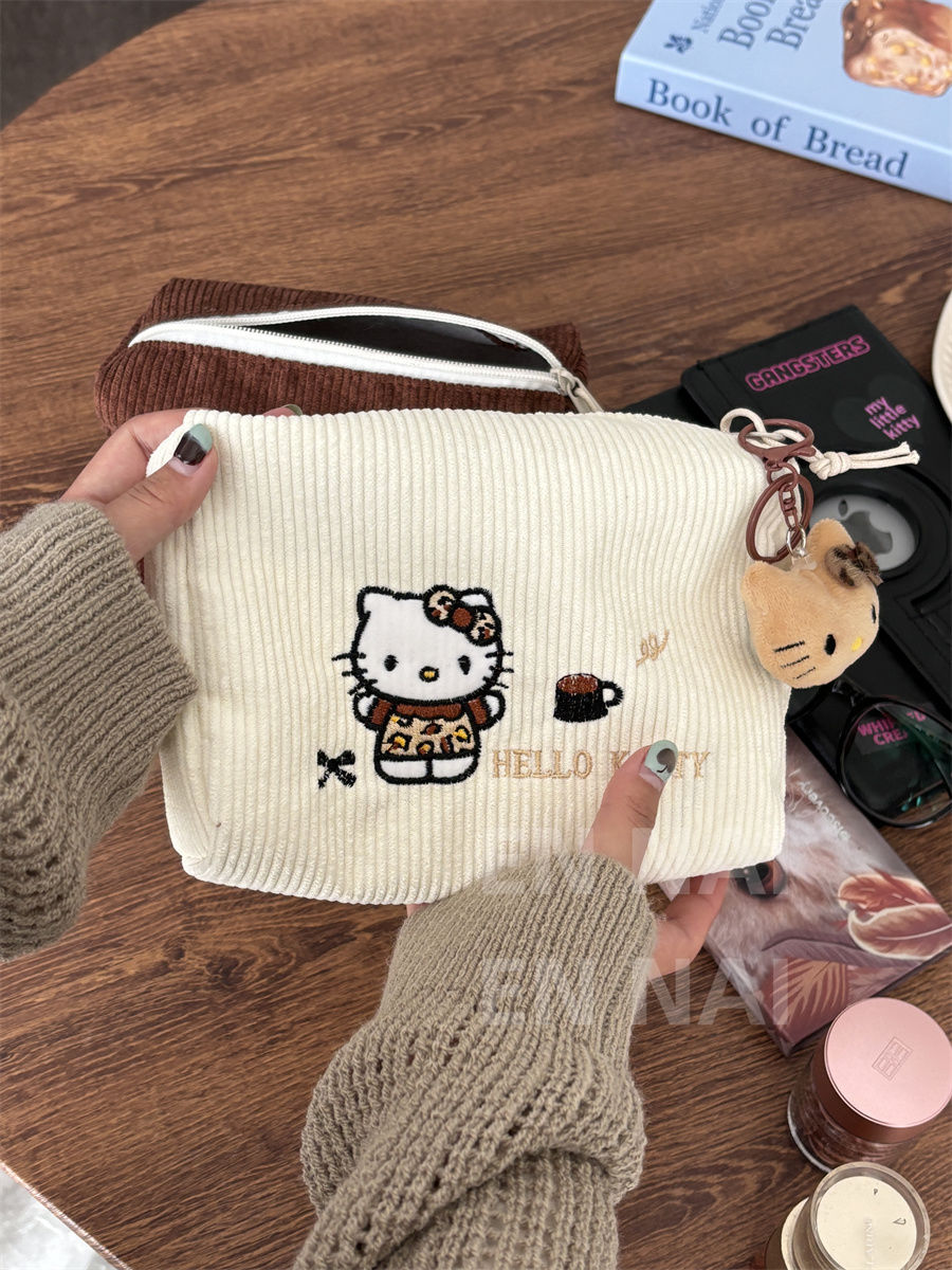 Новая вельветовая косметичка с вышивкой котенка, большая вместительная косметичка, портативная высококачественная ручная косметичка