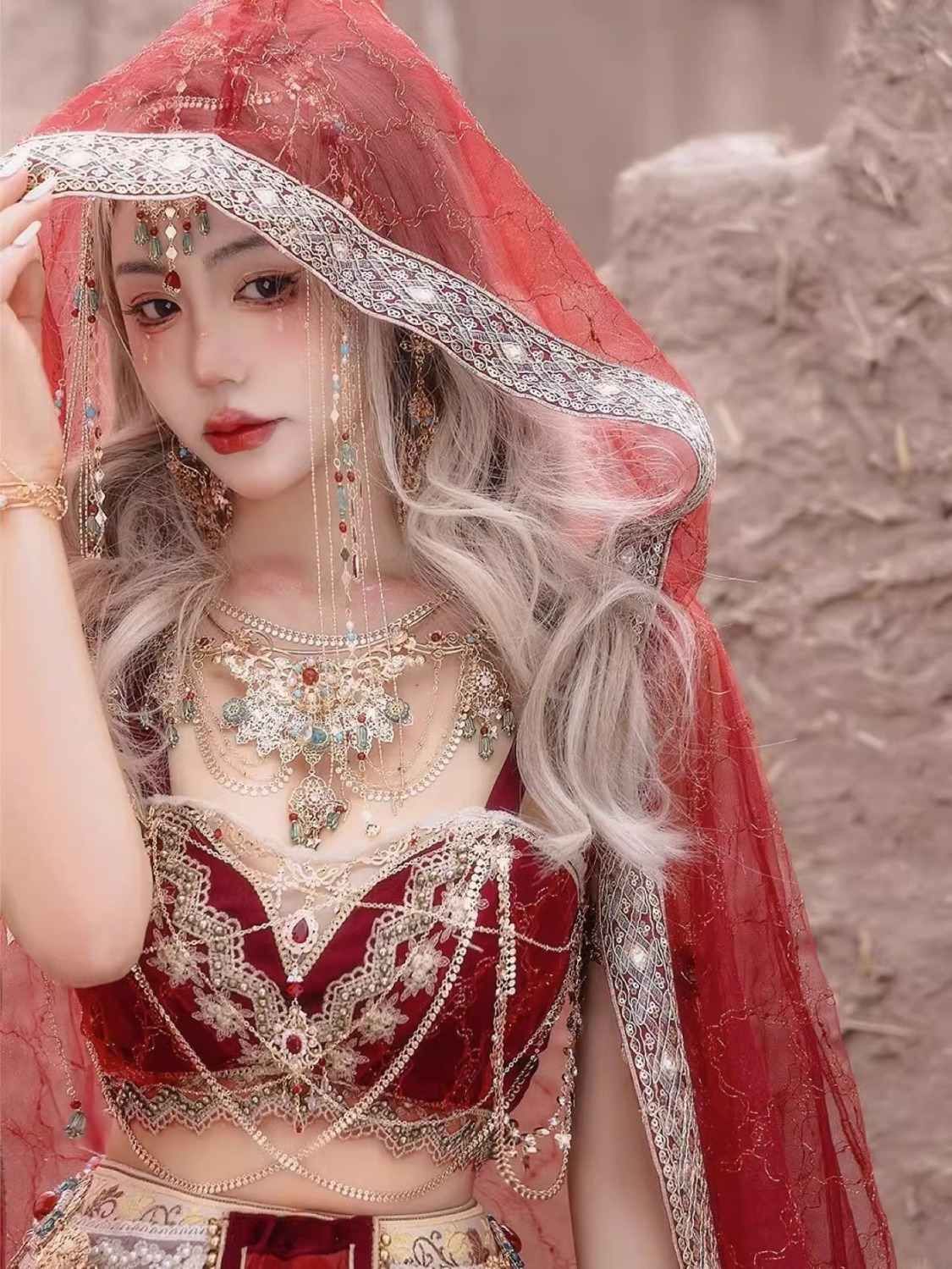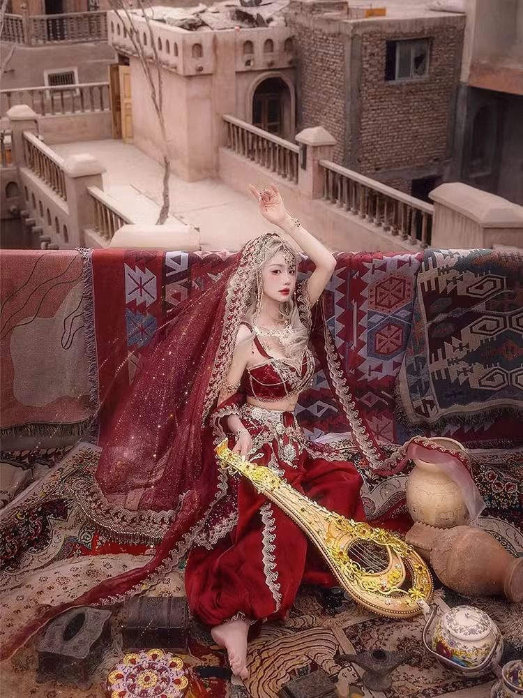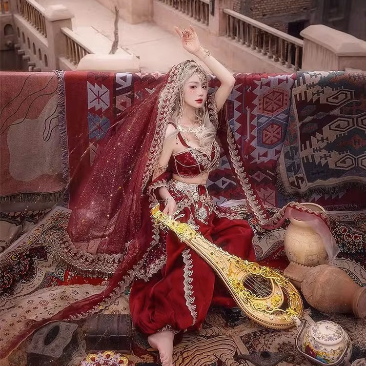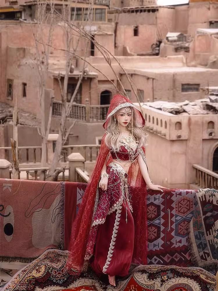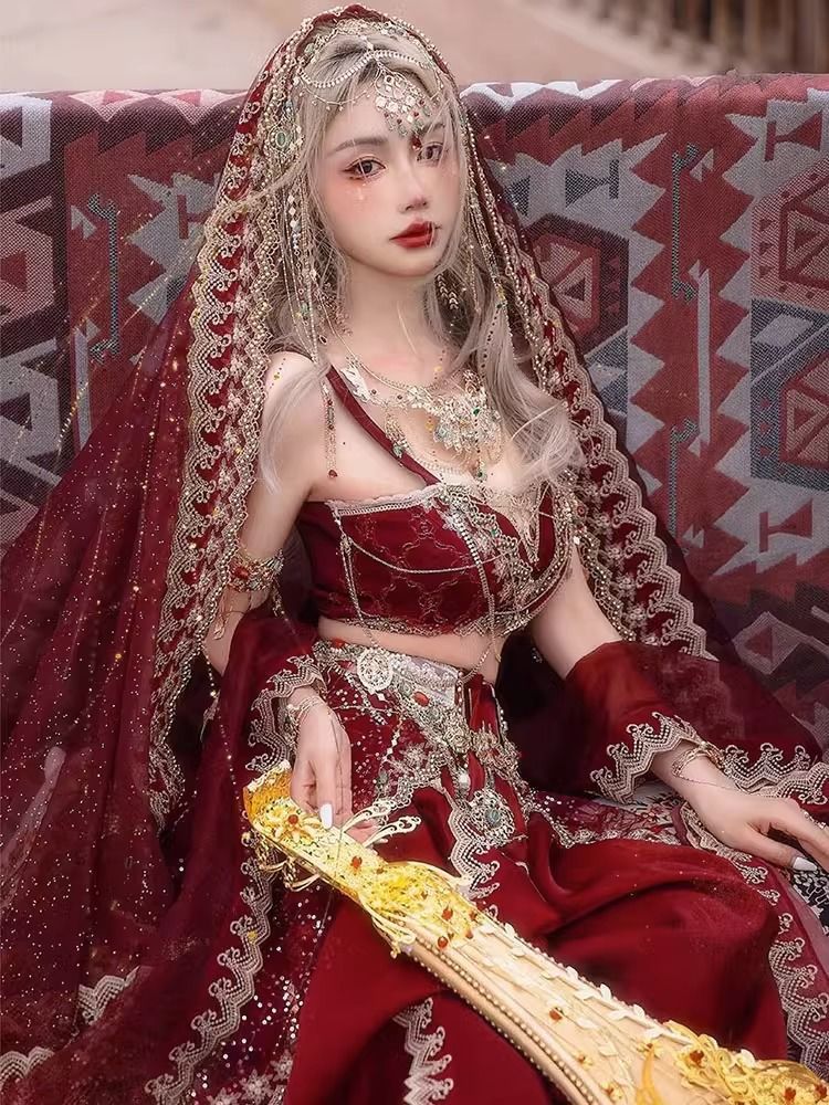 Девушка из Синьцзяна, Юньнань, костюм для путешествий, фотографии, Кашмир, древний город, Западные регионы, принцесса, уйгурская красная одежда в этническом стиле