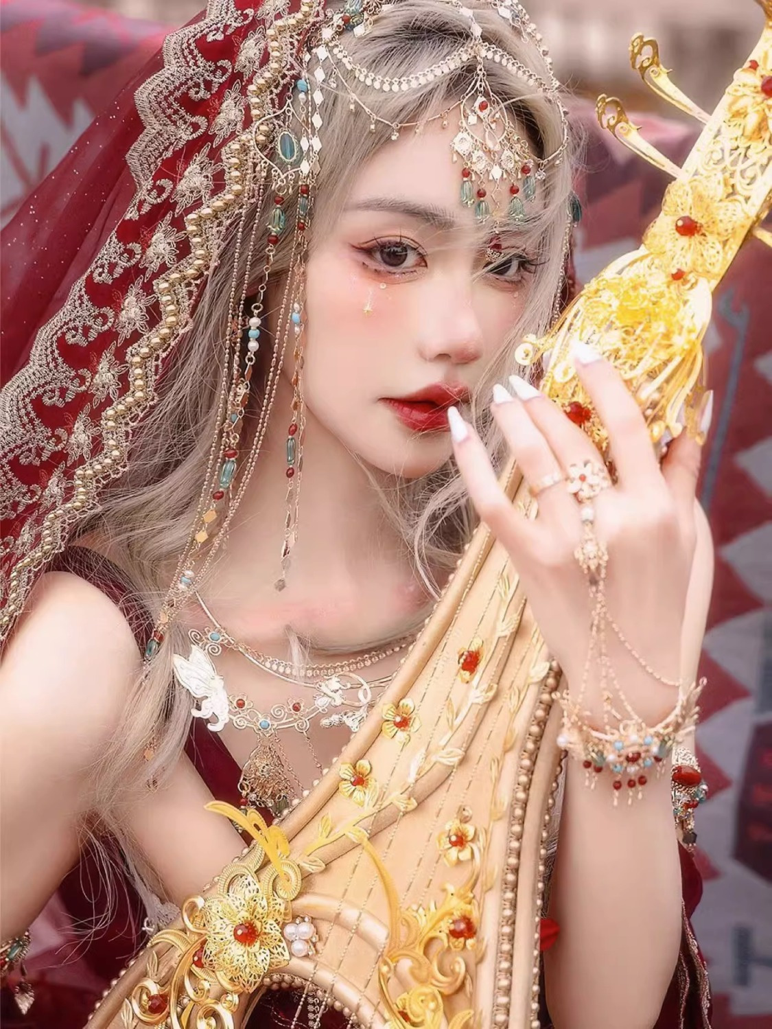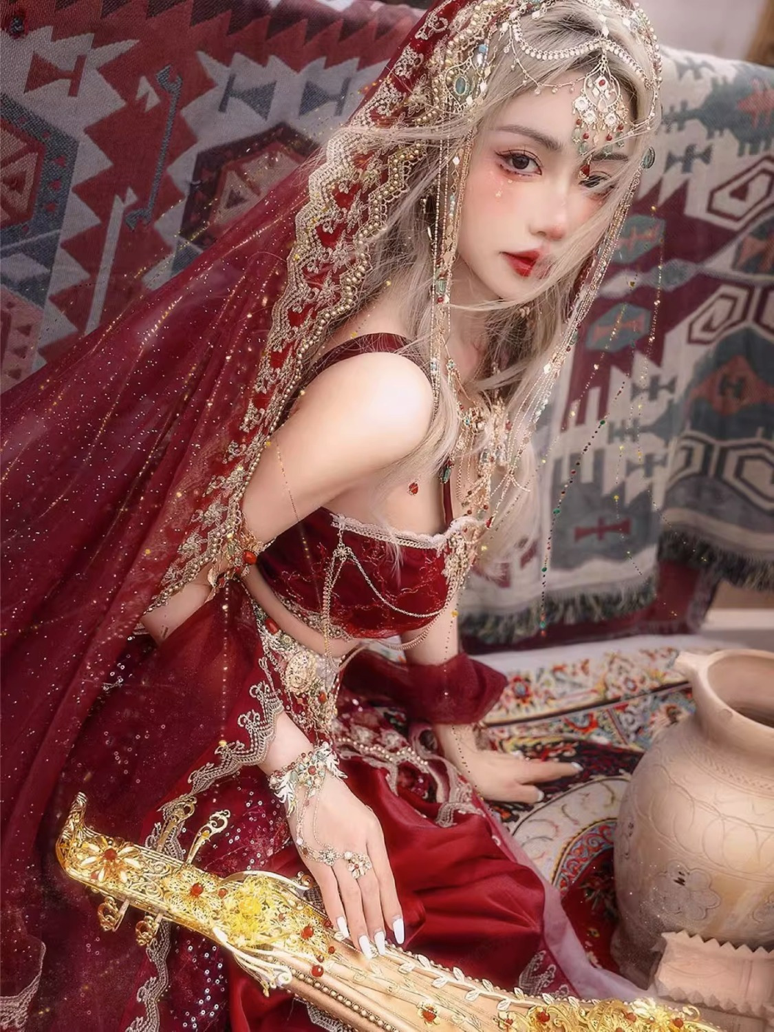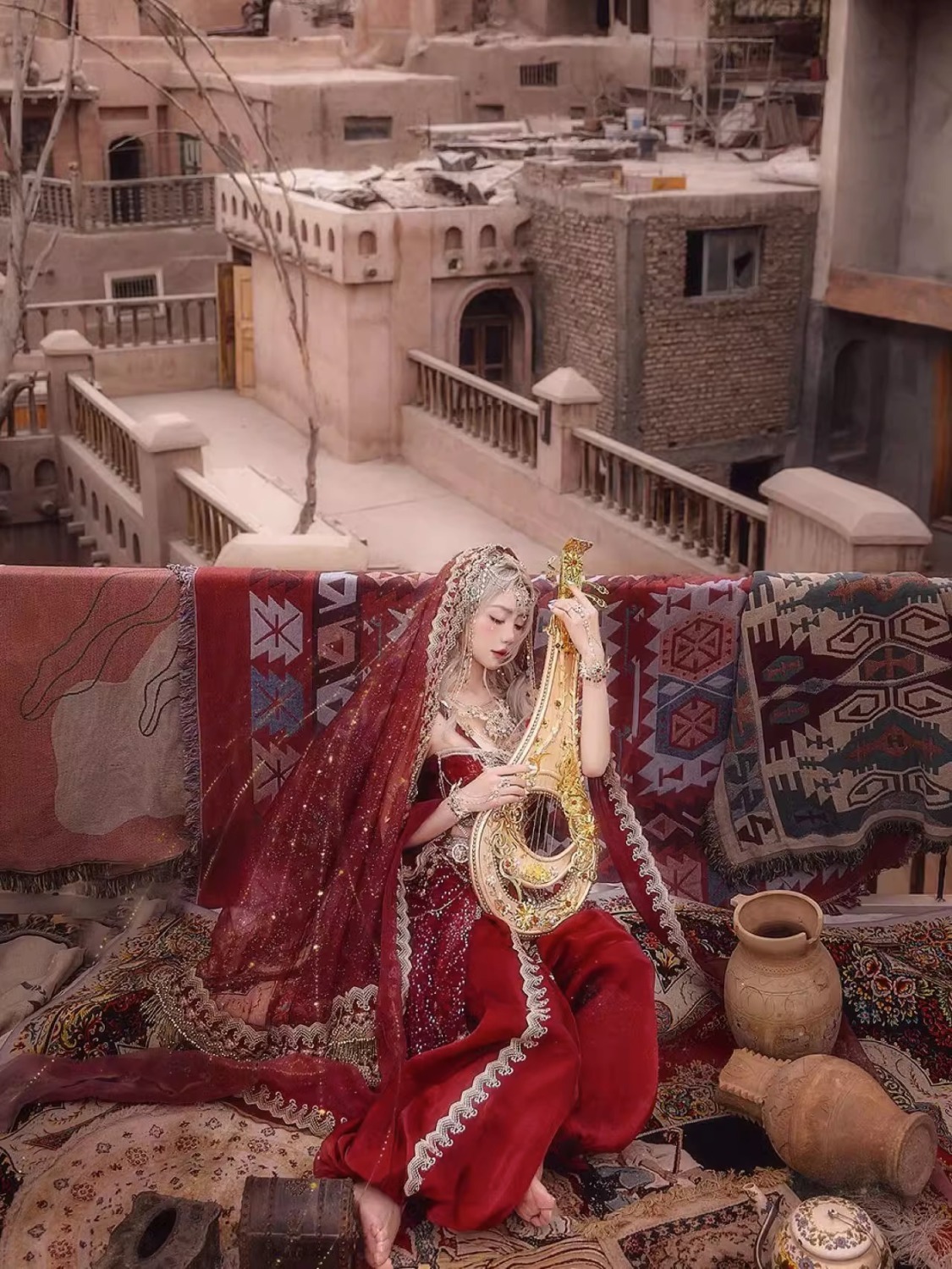 Девушка из Синьцзяна, Юньнань, костюм для путешествий, фотографии, Кашмир, древний город, Западные регионы, принцесса, уйгурская красная одежда в этническом стиле