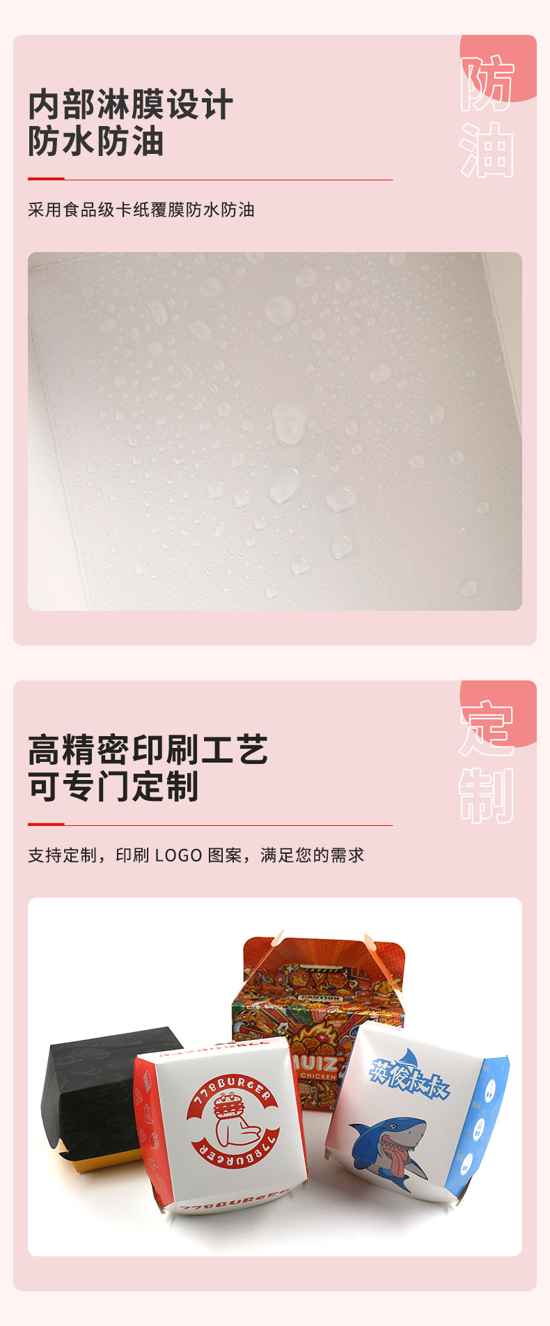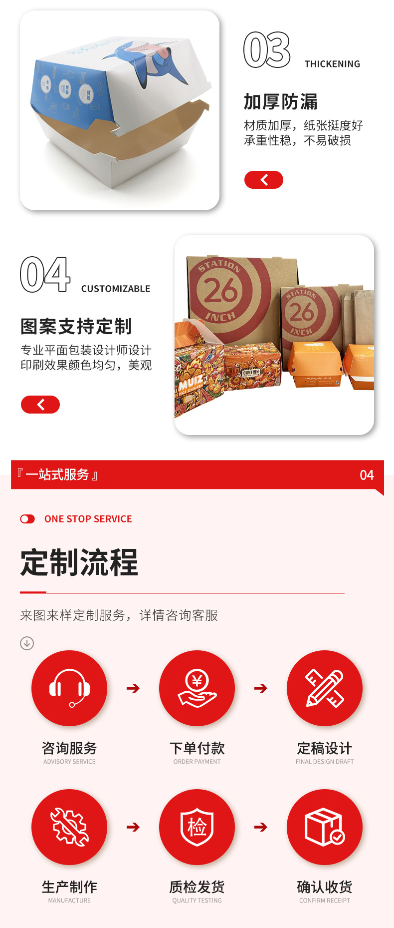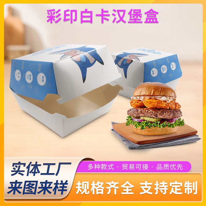 Оптовые готовые упаковочные коробки для гамбургеров, складные, утолщенные, для еды на вынос, коммерческая упаковка