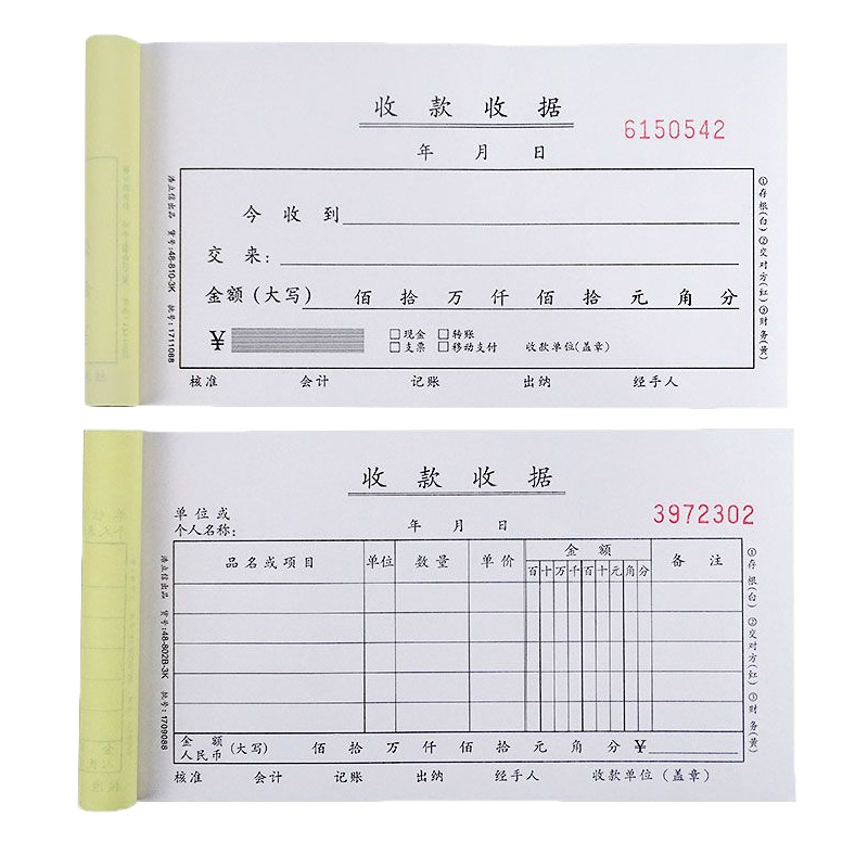 Утолщенный чековый бланк, по один экземпляр каждого из двух разделов, самокопирующийся, форма для выдачи средств, 100 страниц, на заказ, печать от производителя