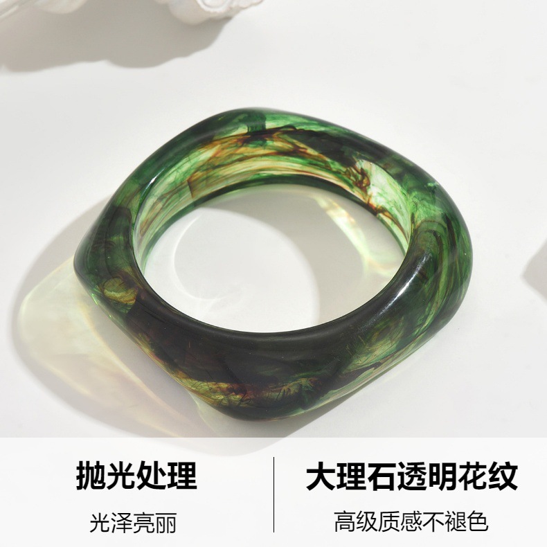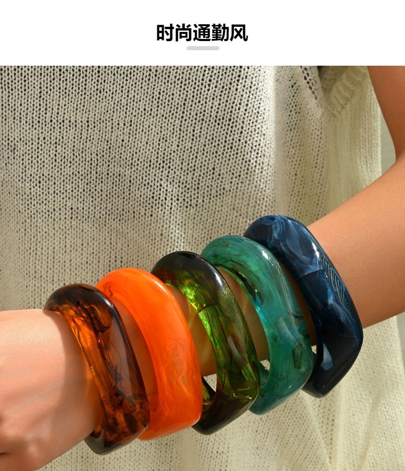 Европейский и американский трансграничный модный прозрачный текстурный браслет из смолы неправильной формы для женщин, нишевый стильный большой широкий браслет