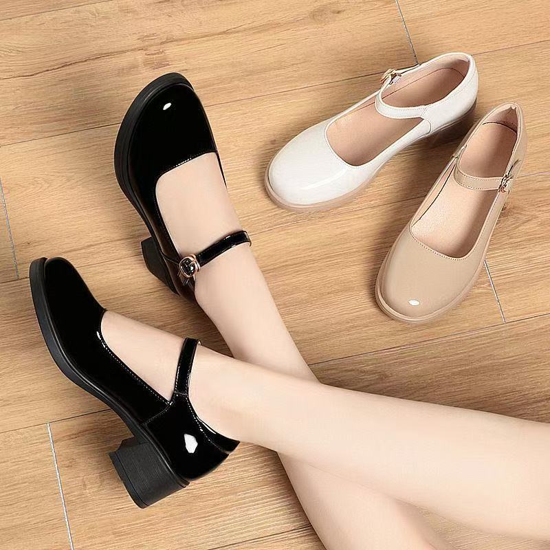 Маленькие кожаные туфли Мэри Джейн, женские туфли с неглубоким носком и пряжкой, круглый носок, новые универсальные весенне-летние туфли из мягкой кожи на мягкой подошве.